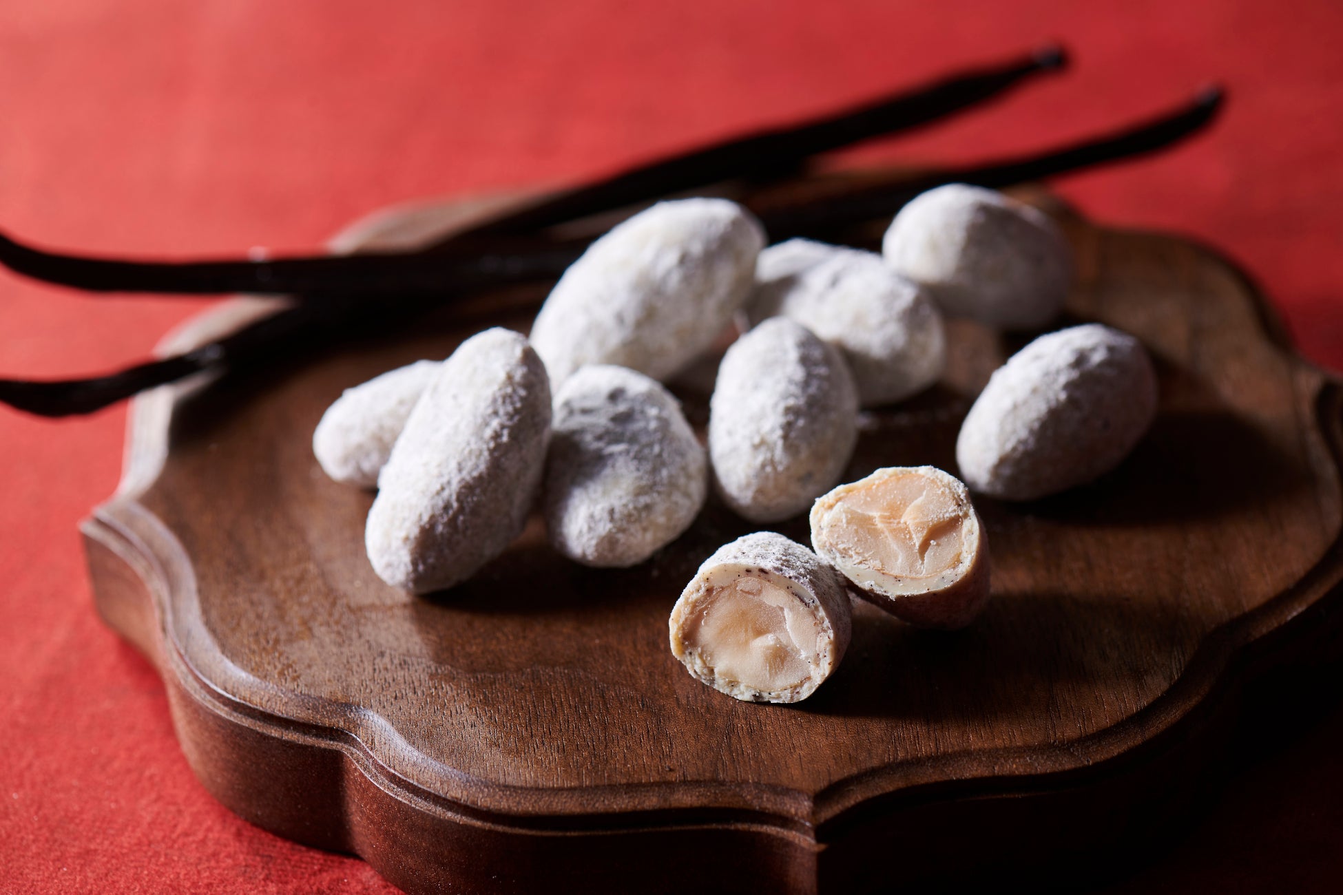 2種類のオーガニックナッツに塩気のあるバニラの糖衣をまとわせました。フワッと香るバニラの香りに和三盆糖蜜(徳島県産)のコクと旨味が加わり、食べだすと止まらない美味しさ。ちょっとしたおやつやお酒のお供におすすめです。