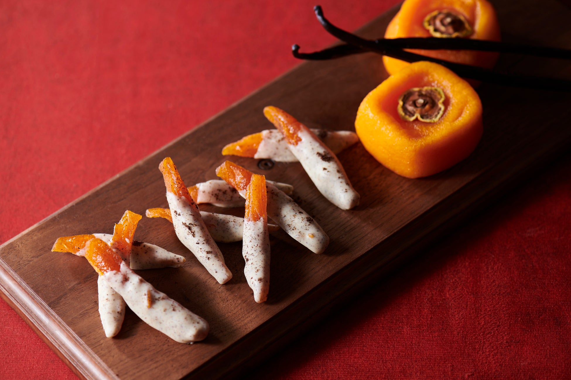 そんな佐渡島より「farmerおおば」のあんぽ柿を、ホワイトチョコでコーティング。ホワイトチョコにはパプアニューギニア産バニラをたっぷりと練り込んでいます。あんぽ柿ならではの甘味と香り、鮮やかな色合いと厳選した上質なバニラが織りなす、新たな味覚をお楽しみ下さい。