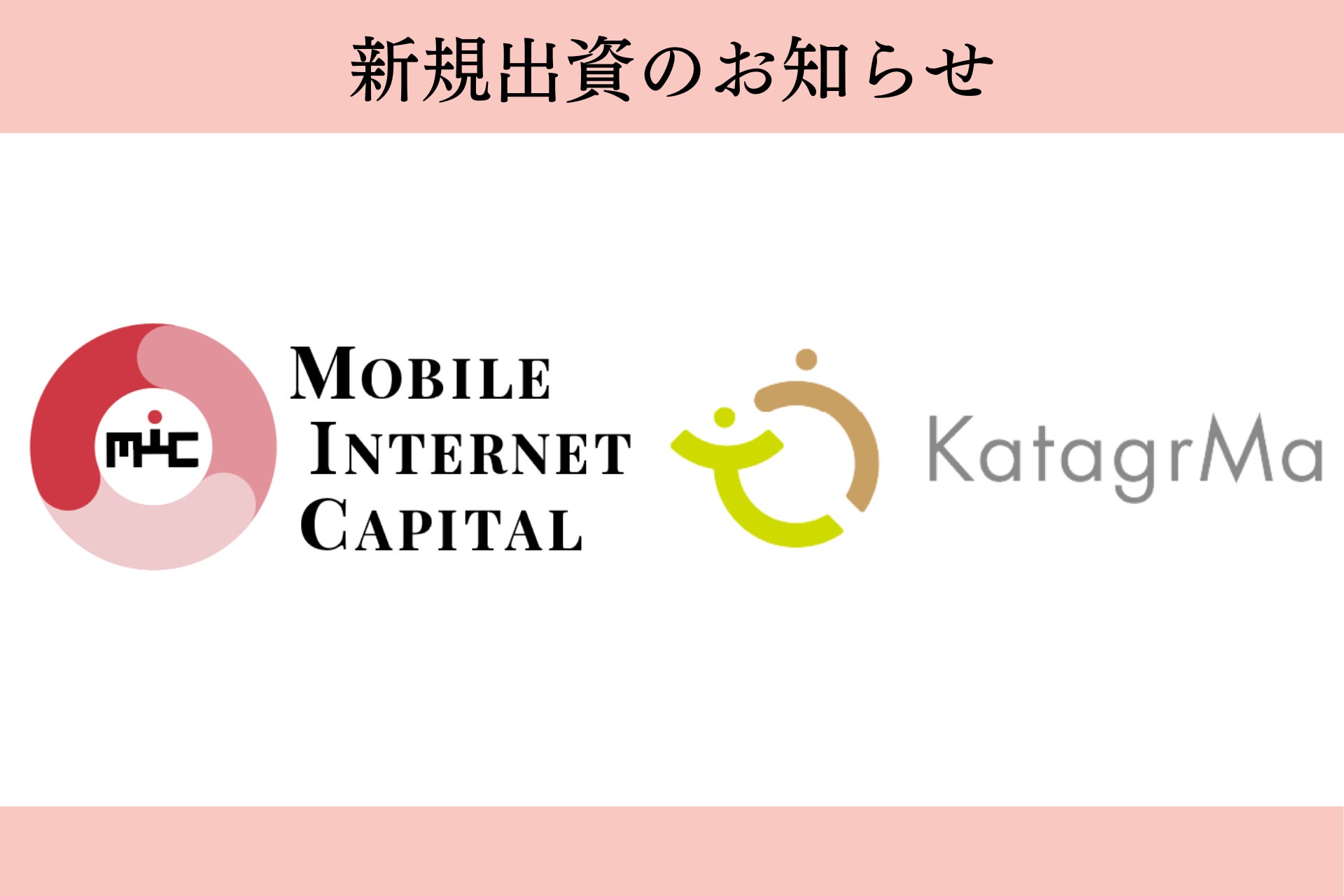 モバイル・インターネットキャピタル株式会社(代表取締役:元木新、本社:東京都千代田区、以下MIC)は、この度、保育・教育関連業界の人材育成プラットフォーム「KatagrMa(カタグルマ)」を提供する株式会社カタグルマ(本社:東京都千代田区、代表取締役:大嶽 広展、以下カタグルマ)へ投資を実行いたしました。