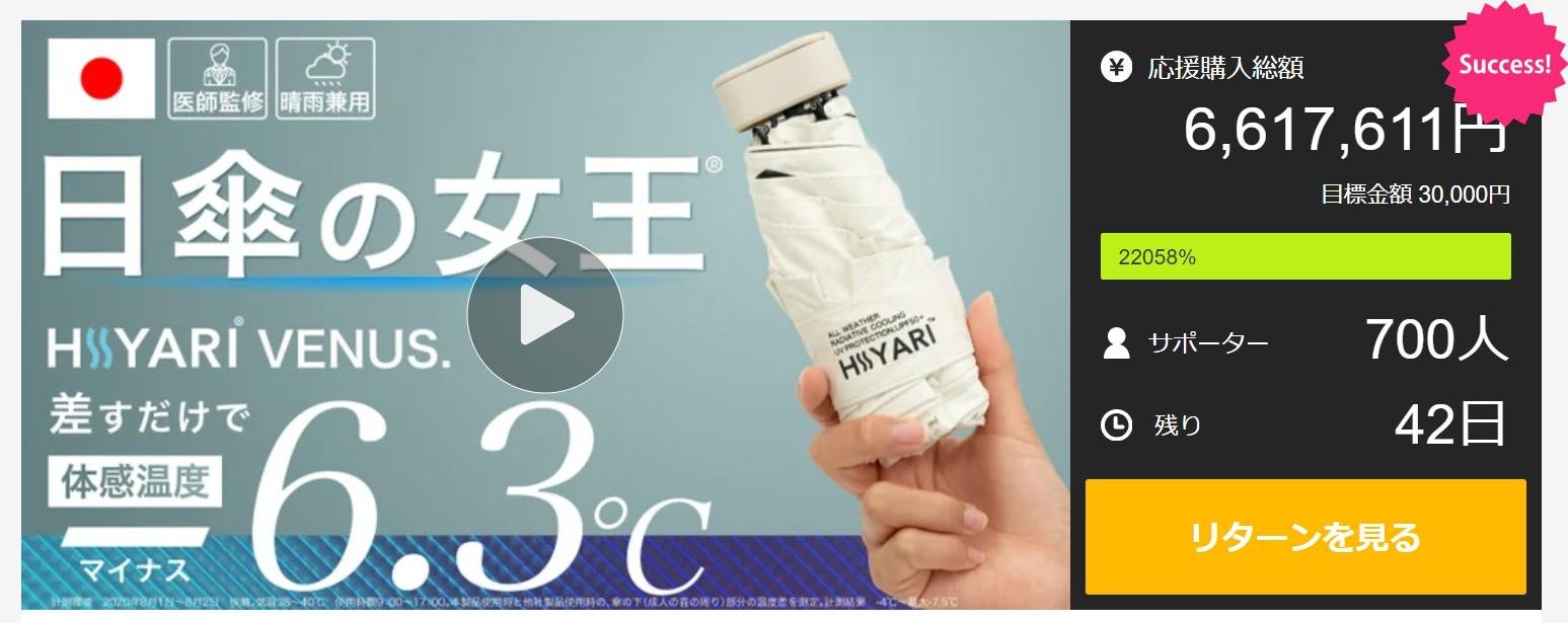 7月11日(木)より応援購入サイト「Makuake」にて、期間限定で先行予約開始。先行お届けリターンの8月お届け分は完売!SNSでも大注目の日傘!ツイッターは100万PV超え!