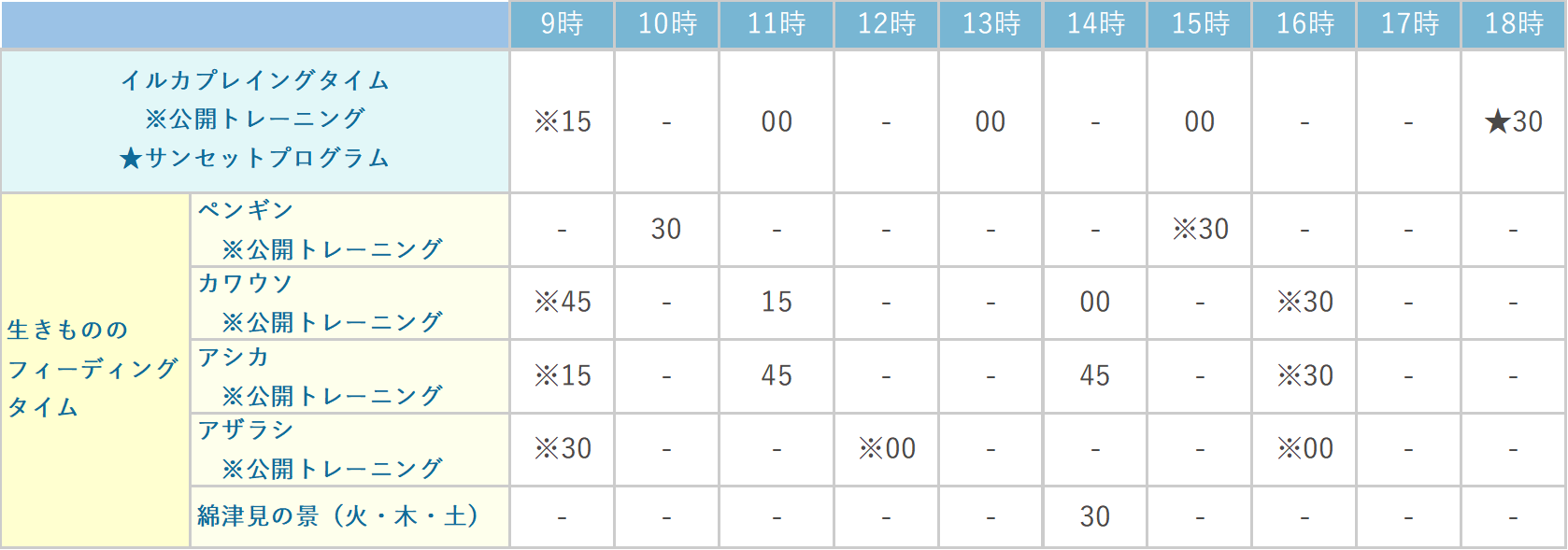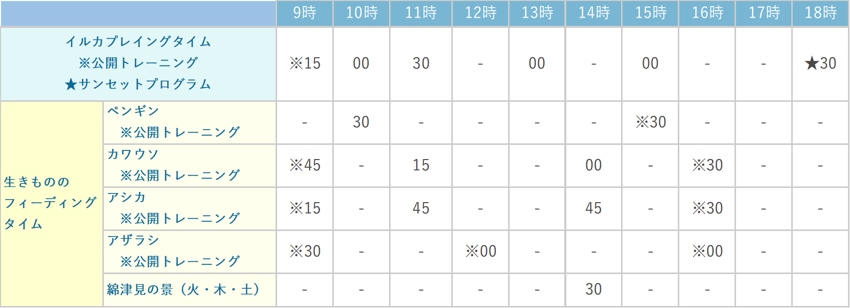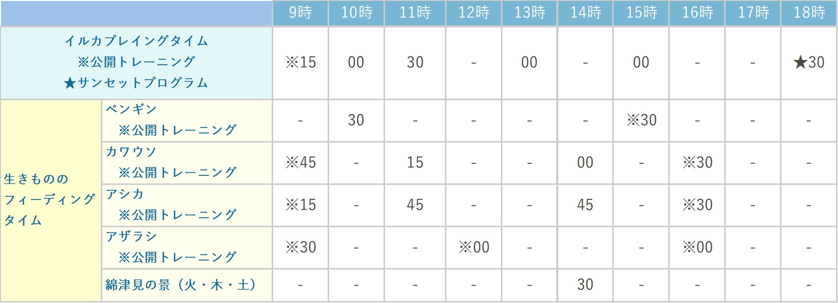 - 場所:イルカ棟2階 海豚プール・サンセットデッキ