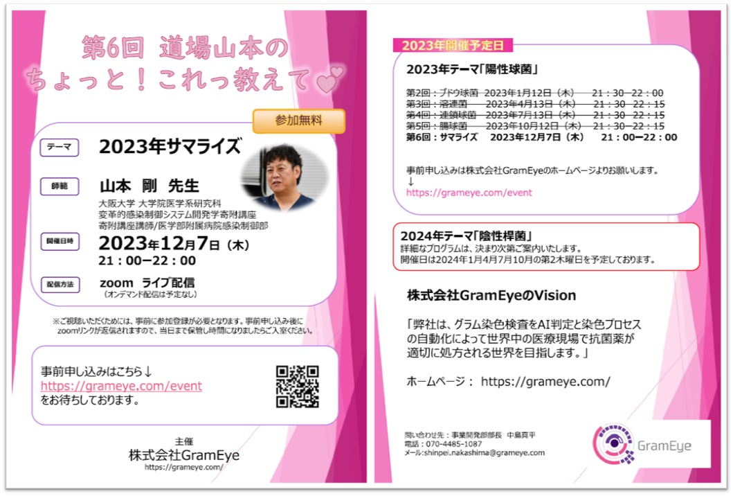 医療系スタートアップ株式会社GramEye、グラム染色のウェビナーを開催、講演動画を配信中