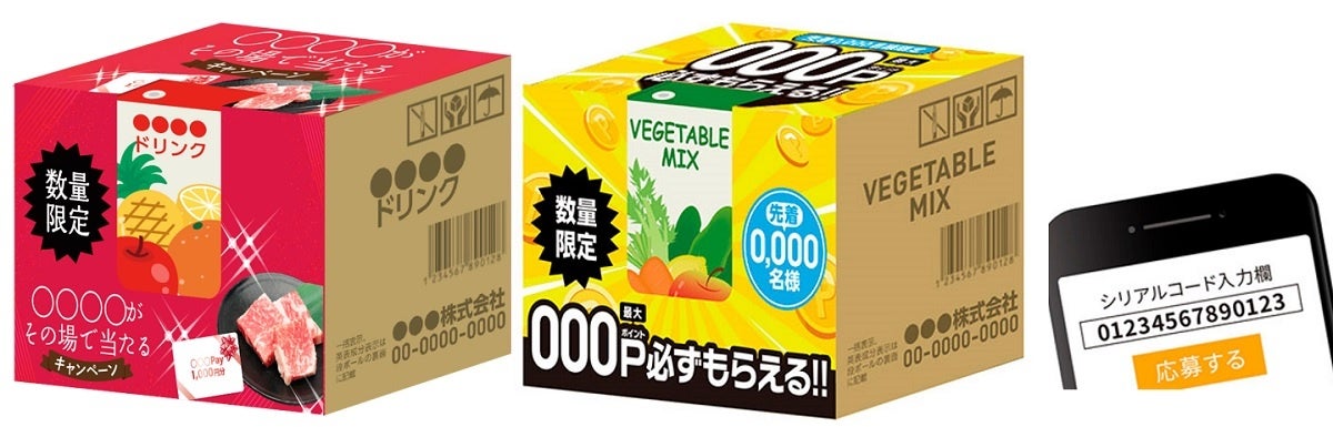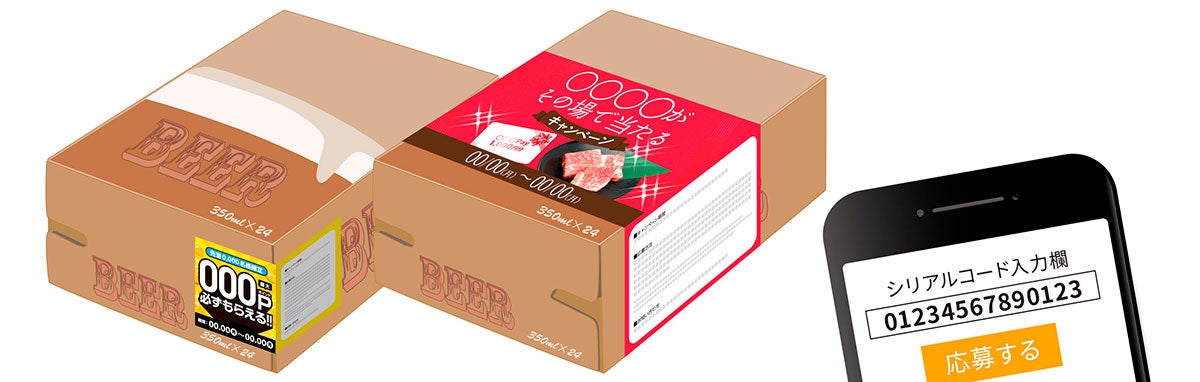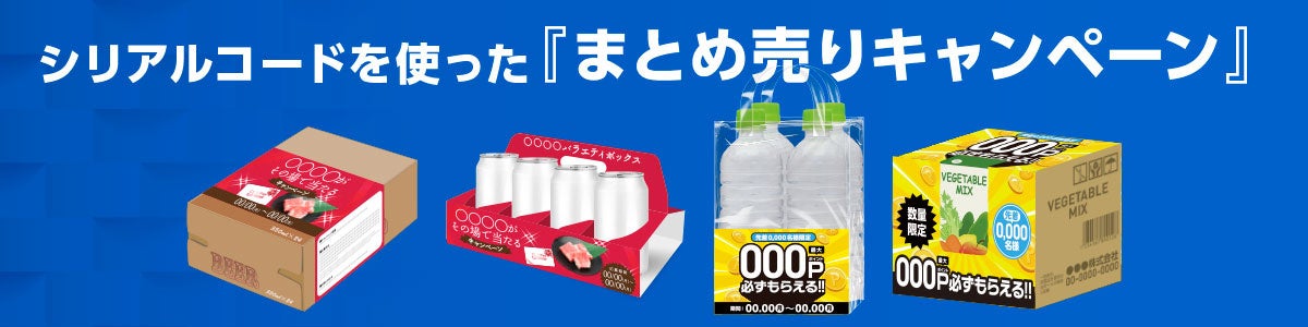 エリア単位など、小・中規模の企画でもインスタントウィンや必ずもらえるキャンペーンなどを実施可能!ケース販売や持ち帰り袋など、まとめ売りキャンペーンにより販売をさらに活性化します。
