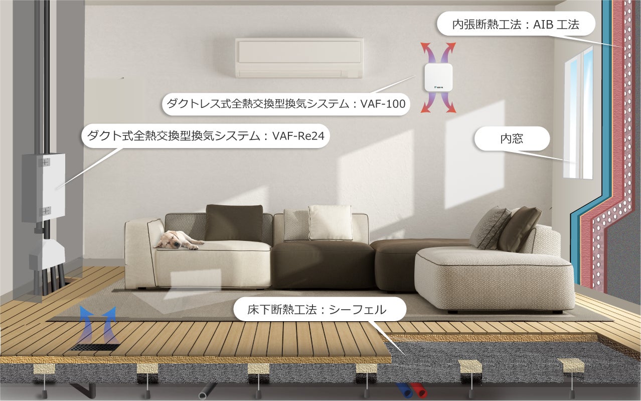 このたび、事業者様から最も多くご要望をいただきました、「施工手間やコストを抑えた断熱性能向上の新たな手法」と「快適な温熱環境が実現できる床下ダクト式全熱交換型換気システム」の開発が完了いたしましたことを発表いたします。