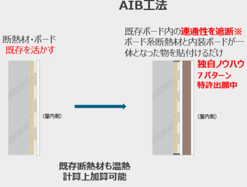 (1) AIB工法(attach insulation board)~施工手間、コストを抑えた壁の断熱性能向上の新工法~