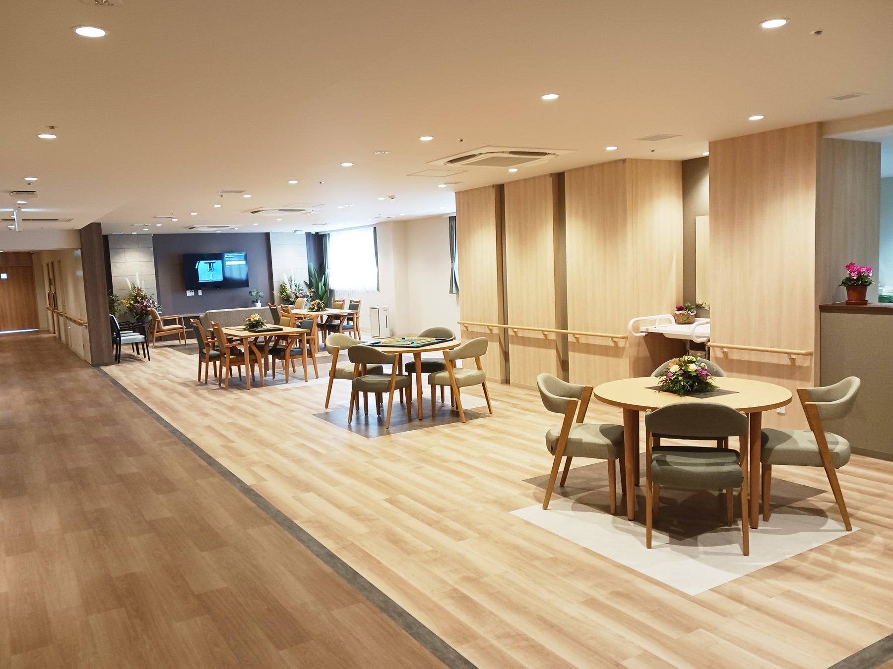 ご入居者様には、開放感のある談話コーナーで、様々な交流を楽しんでいただきたいです。そして「日々の選択肢を尊重する」ことで、ご自身らしい暮らしを送っていただきたいと考えております。