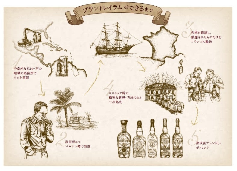 プラントレイラムは、ラムの故郷カルバドスをはじめ、ジャマイカやトリニダード、オーストラリアなどの24ヶ所以上の個性豊かなテロワールで作られたラムを、原産地の個性とアイデンティティを引き立てられるようブレンドし、フランスの温暖な南西部で二次熟成しています。原料となるラムは、地元の蒸留所と協力して原料や技法を研究し、独自の風味やプロファイルを引き出せるよう開発しています。また、熟成プロセスを見直すことで、各樽を最高の状態に引き上げています。数々の受賞歴を誇り、世界中にファンを持つプラントレイラムのマスターブレンダー、アレキサンダー·ガブリエルが織りなす、プラントレイラムを日本にお届けします。
