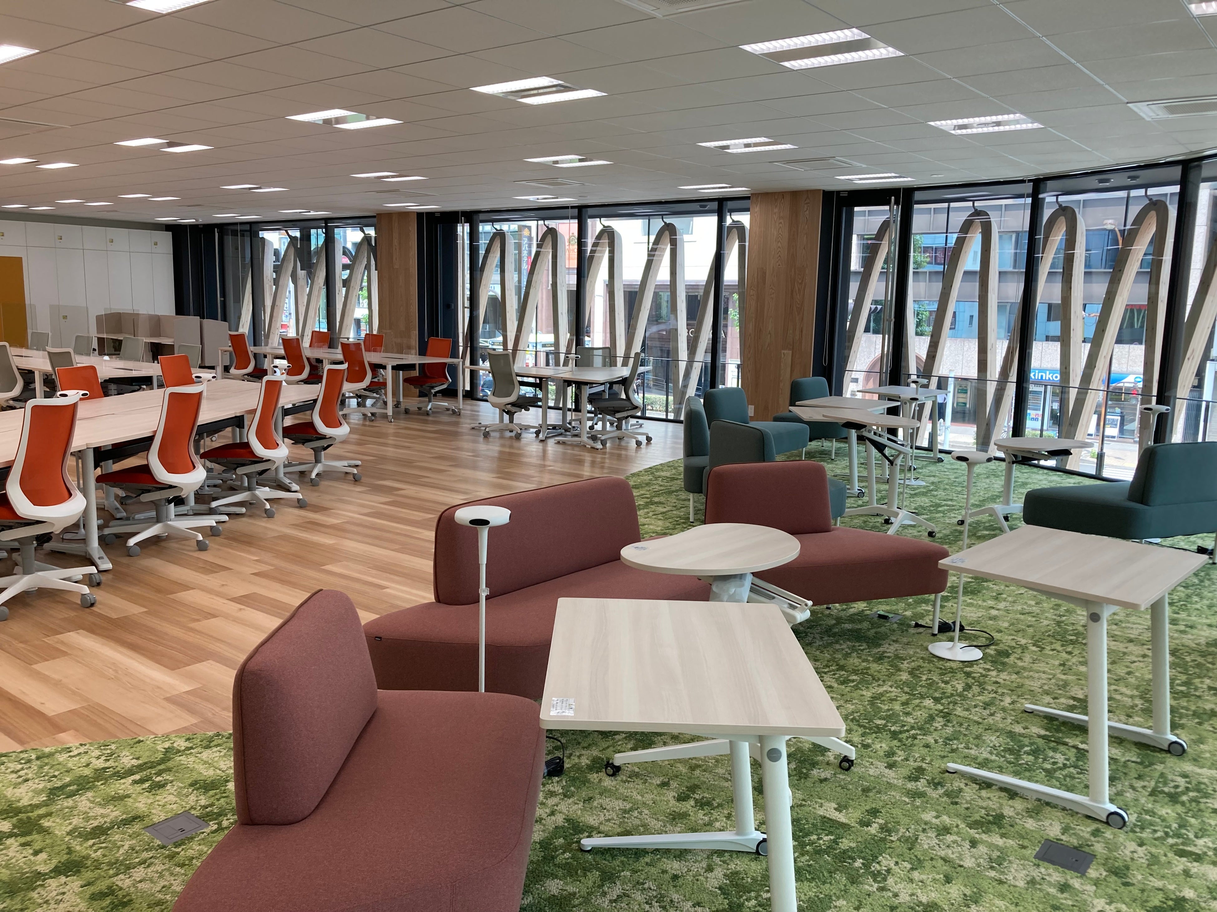 ③ 座席は原則フリーアドレス化。従業員は仕事の内容に応じて、最適な業務エリアを選択できます。