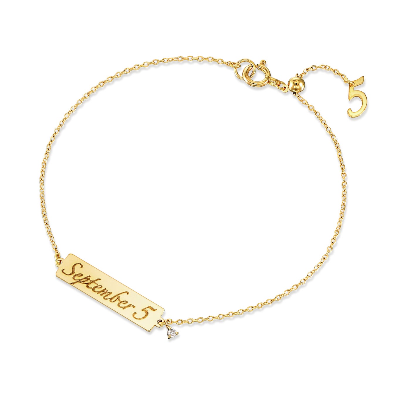 夏に向けて気軽につけられるブレスレットが欲しいというご要望がお客様から寄せられ、Tシャツにもつけられる軽いオリジナルブレスレットを製作いたしました。一つは18金のプレートに好きな文字を刻印できるセミオーダータイプブレスレット、あと二つはSeptember5の新しいオリジナルデザインのブレスレットです。どちらにもラボグロウンダイヤモンドを使用しております。