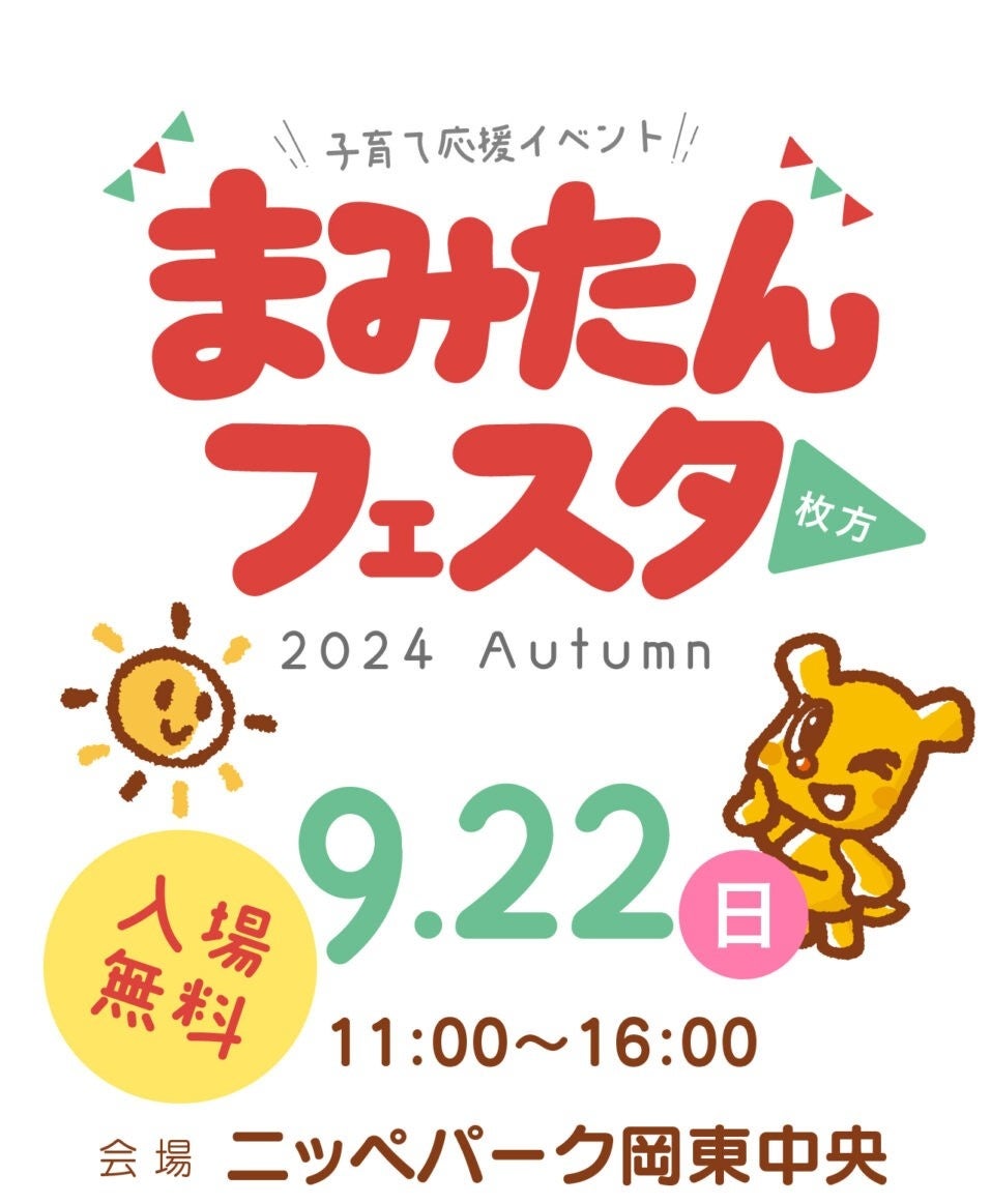 2024年9月22日(日)、枚方市駅前のニッペパーク岡東中央にて、子育て応援イベント「まみたんフェスタ 枚方~2024 Autumn~」開催!