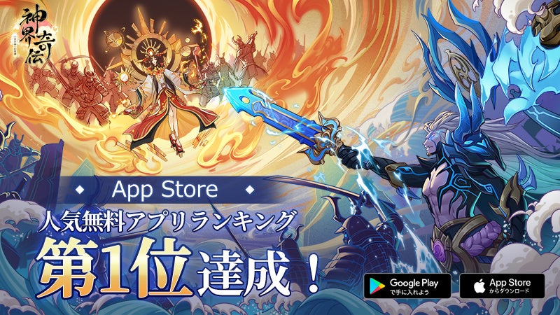Sky Entertainment Network Limitedが配信予定のスマートフォン向け新作アプリ『神界奇伝 ~八百万神の幻想譚~』(以下、『神界奇伝』)におきまして、本日5月11日(木)に正式サービスを開始し、早くもApp Store&Google Playの無料アプリランキングで1位を獲得いたしました。本作の事前登録者数は合計で30万人を突破し、それに応じた事前登録報酬をゲーム内でユーザー全員に配布致します。