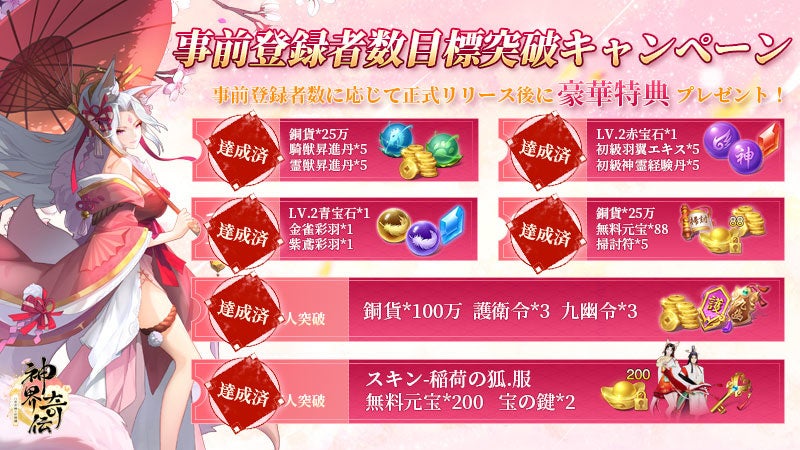 現在、「神界奇伝」では5月11日(水)より、正式サービス開始を記念したキャンペーンを多数開催しております。
