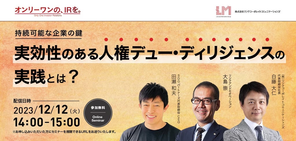 こんな方におすすめ:人権デュー・ディリジェンスにご興味をお持ちのIR広報・経営企画・サステナビリティご担当者様、メディア関係の皆様