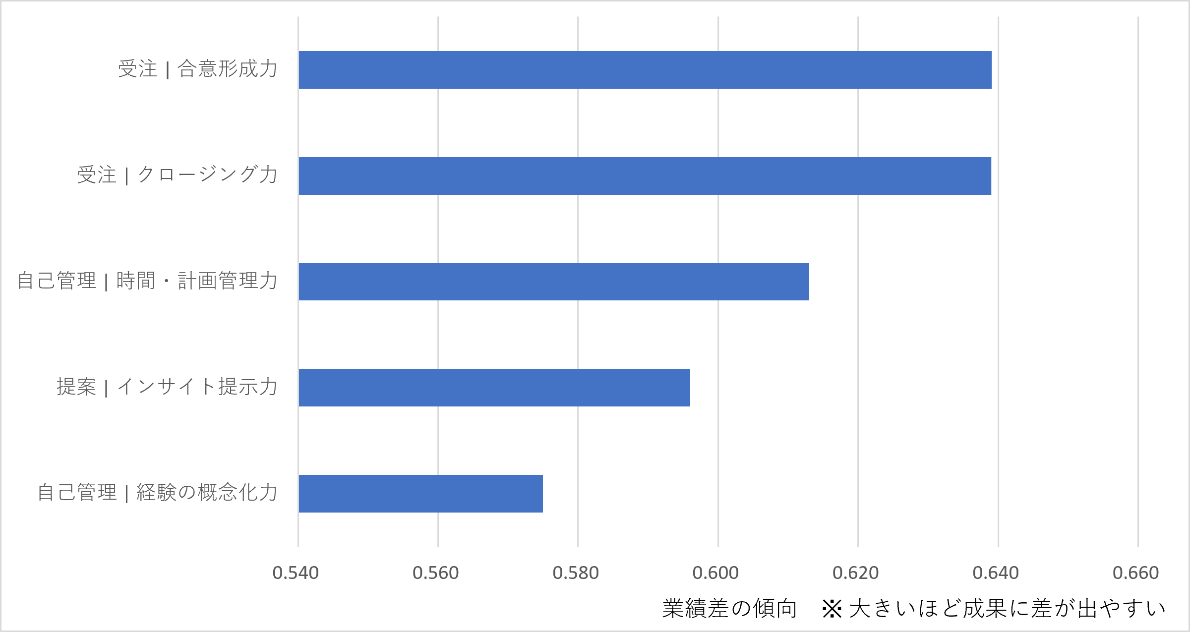 このように高業績者と低業績者の違いを構造的に捉えることは、今後の営業育成や組織づくりを考えるうえで、重要な出発点となります。