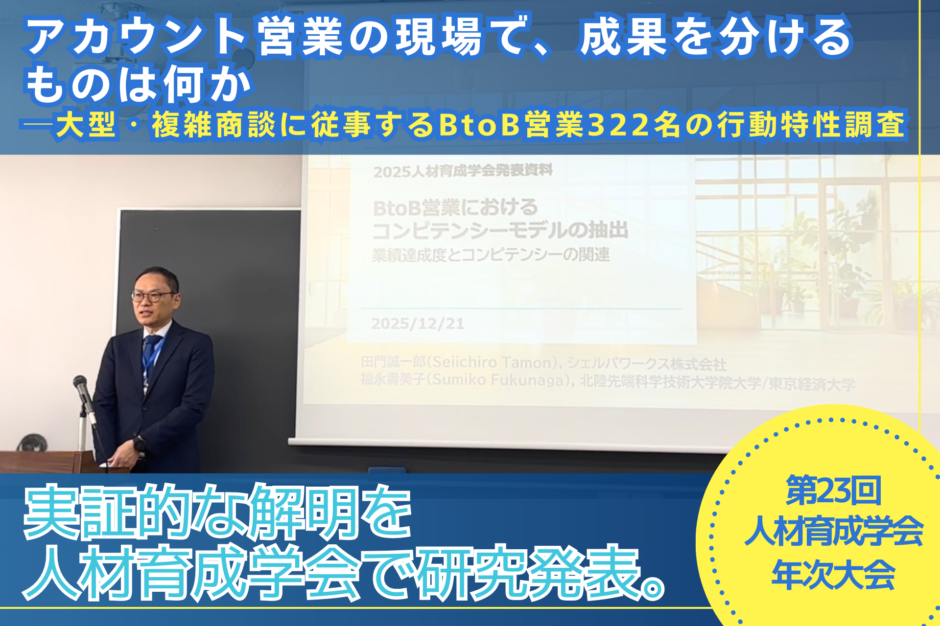 本研究は、シェルパワークス株式会社 執行役員の田門誠一郎および福永壽美子氏(北陸先端科学技術大学院大学/東京経済大学)による共同研究として実施され、第23回人材育成学会年次大会において研究発表されました。