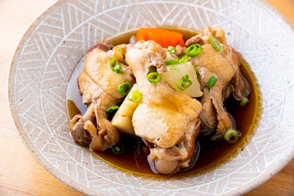 国産鶏手羽元を国産野菜と甘辛く炊いて、瀬戸内の橙を使用したポン酢でさっぱりと仕上げました。