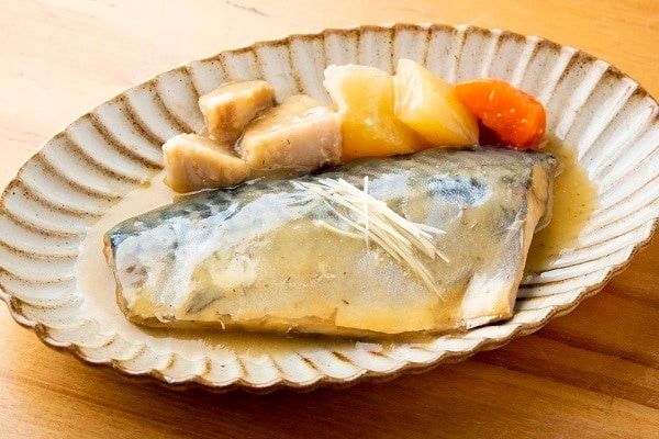 まぐろにも似た赤身の味わいの媛スマを、国産野菜とともに甘辛いたれでふんわりと煮付けました。