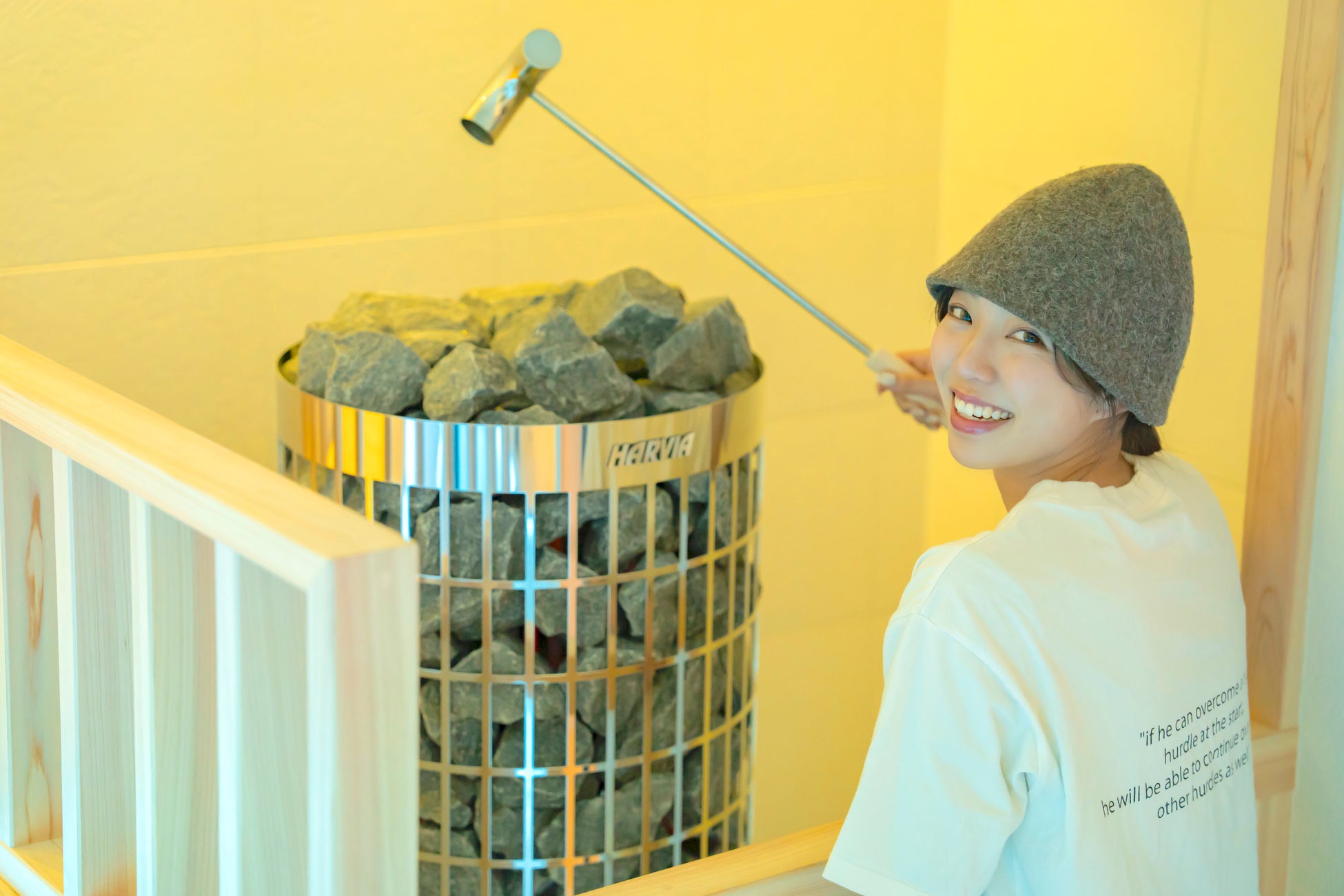 室温はフィンランドサウナに習いマイルドな室温に調整されており、セルフロウリュもお楽しみいただけます。