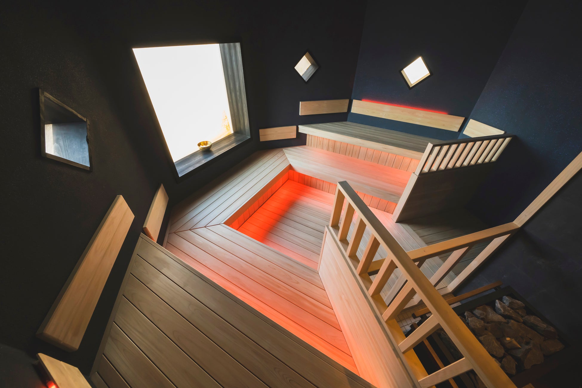 『Tuli Sauna』は、フィンランドはヘルシンキの『ソンパサウナ』から着想を得た、暗い室内にわずかに光が差し込む"黒のサウナ"。