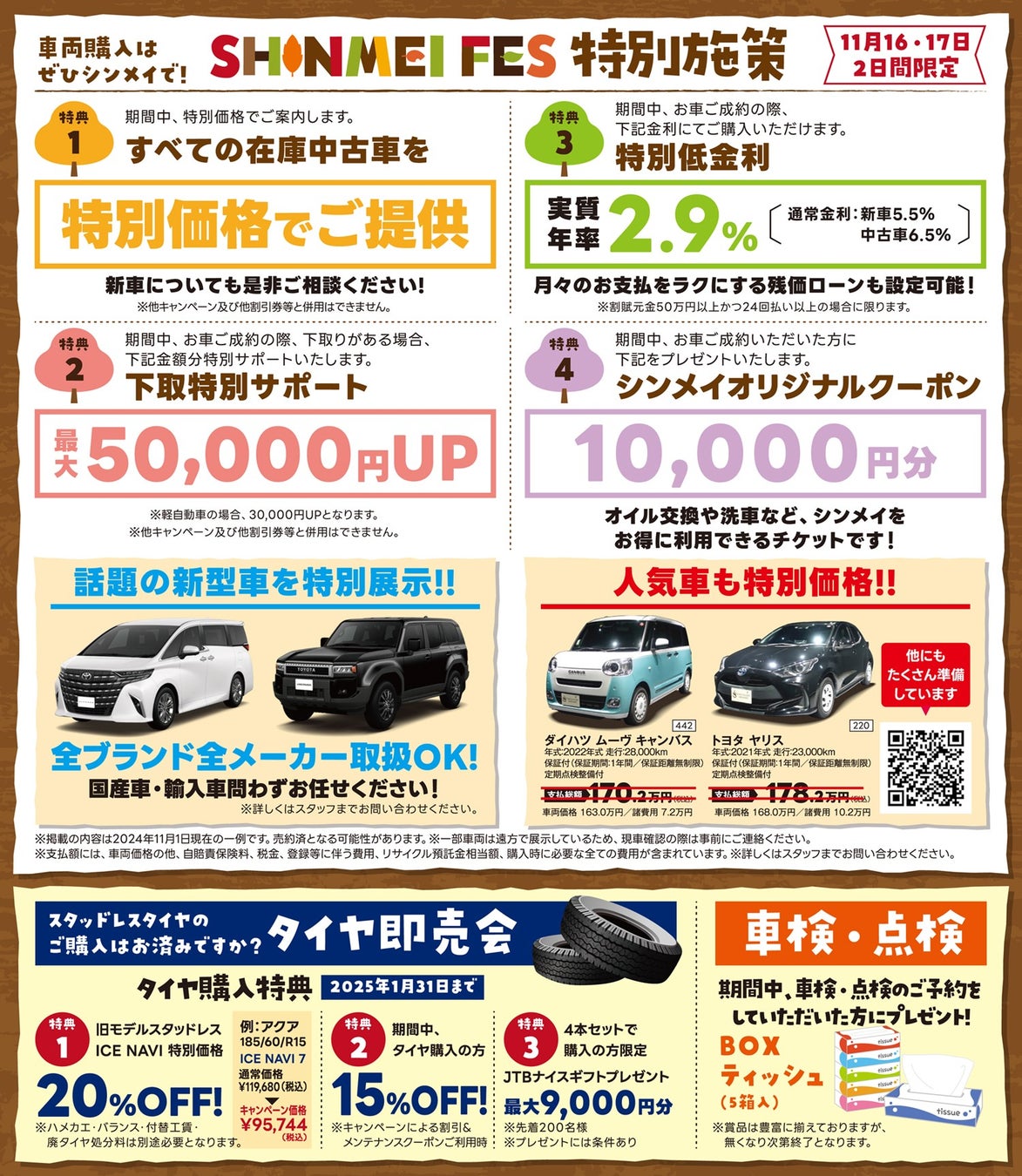 車検・点検のご予約も受付しております。イベントでご予約いただいた方には限定のプレゼントをご用意しております。