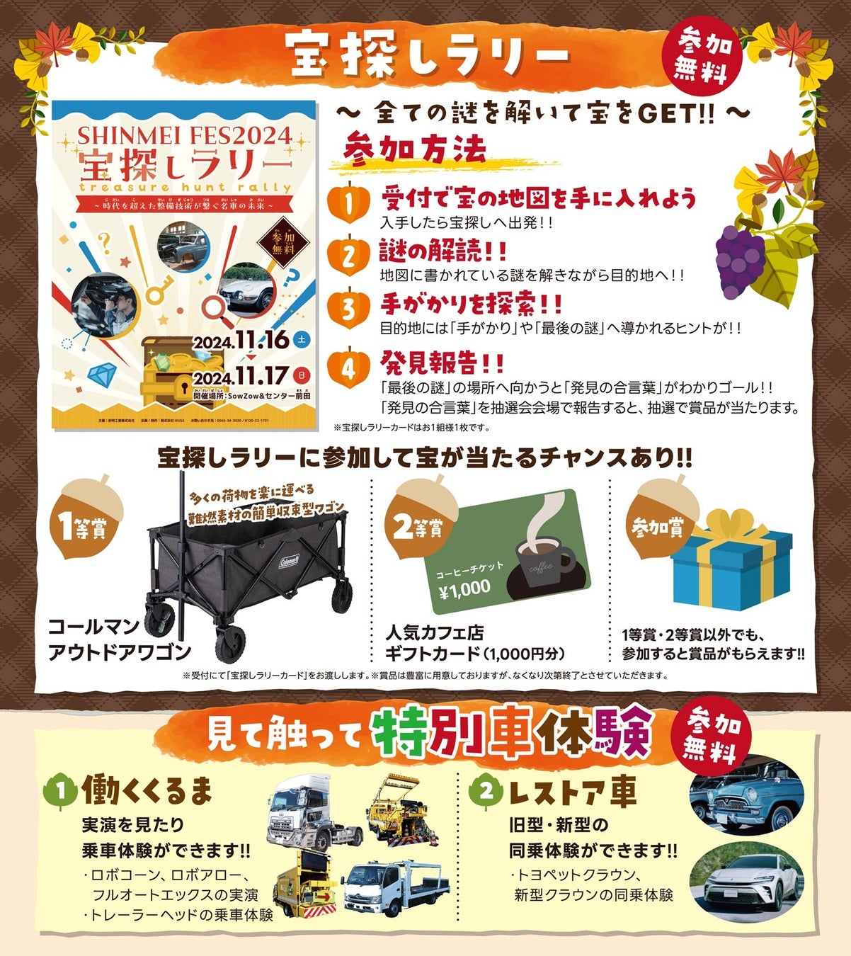 11月16日(土)17日(日)はSHINMEI FESを開催!新明工業ならではの体験が盛りだくさんのイベントです。素敵な景品・お得な特典をゲットしてください!