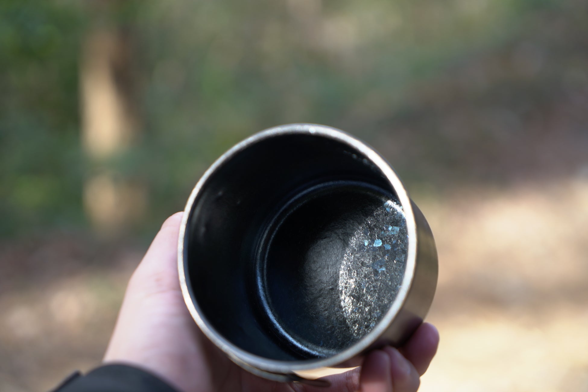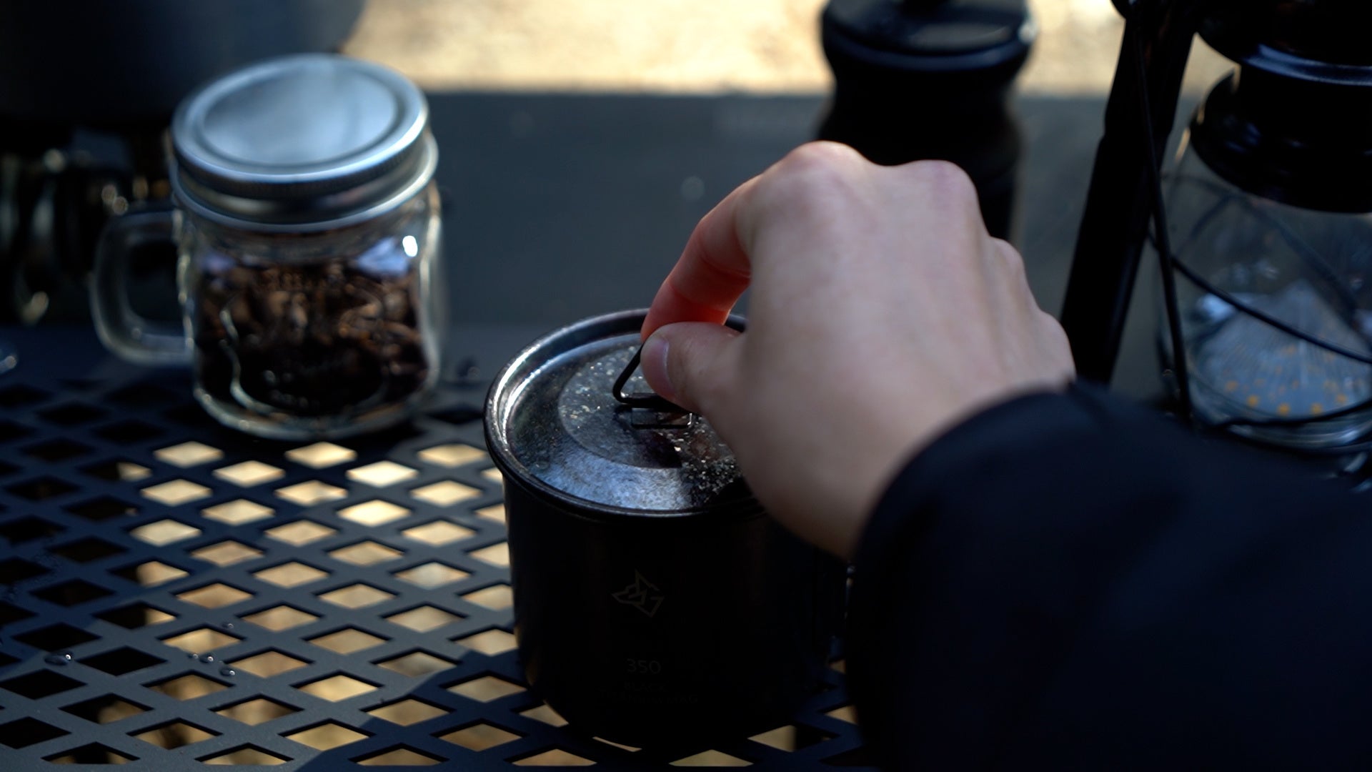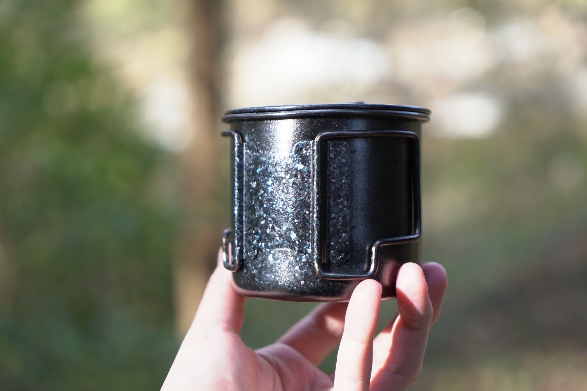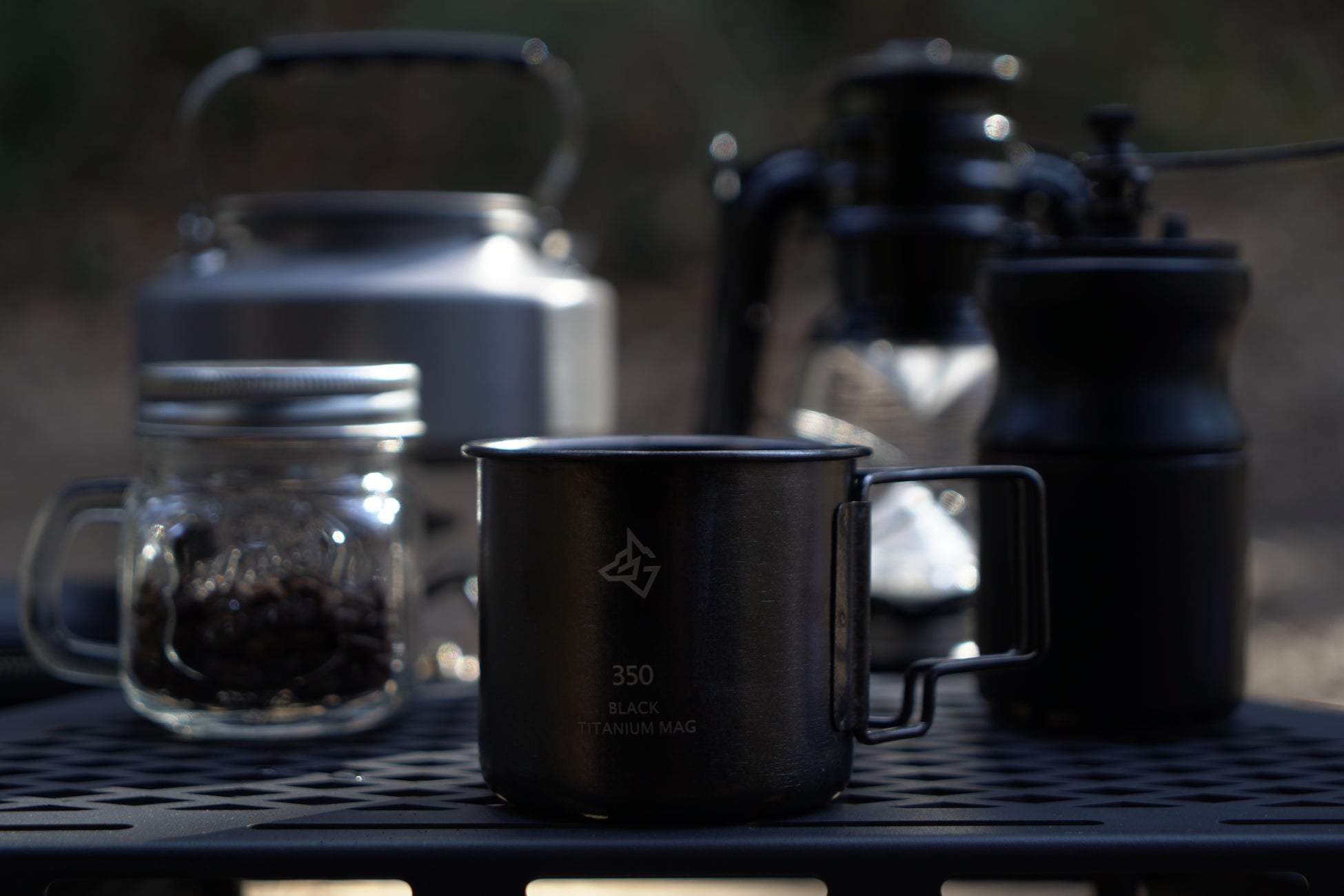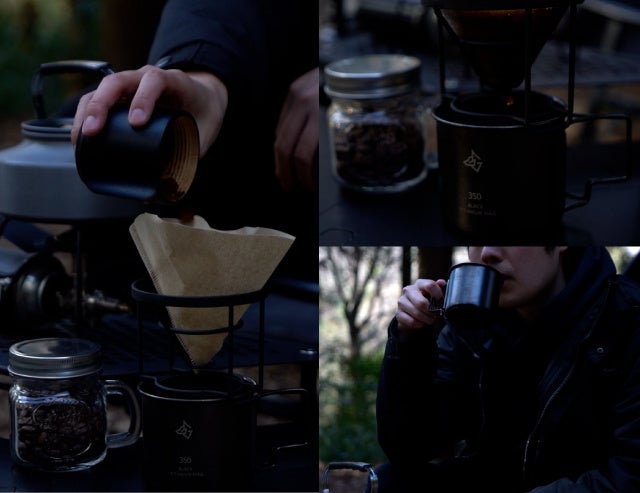 - ブラックチタンマグがキャンプのティータイムを格上げする