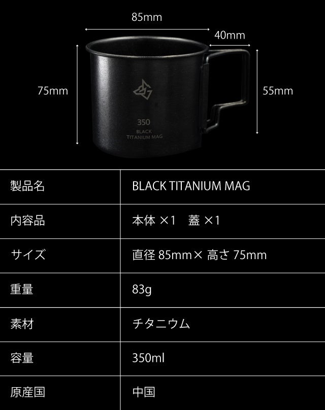 第一弾となるBLACK TITANIUM MAG (ブラックチタンマグ)は今までにないブラックのデザイン性とチタンの機能性を兼ね備えています。