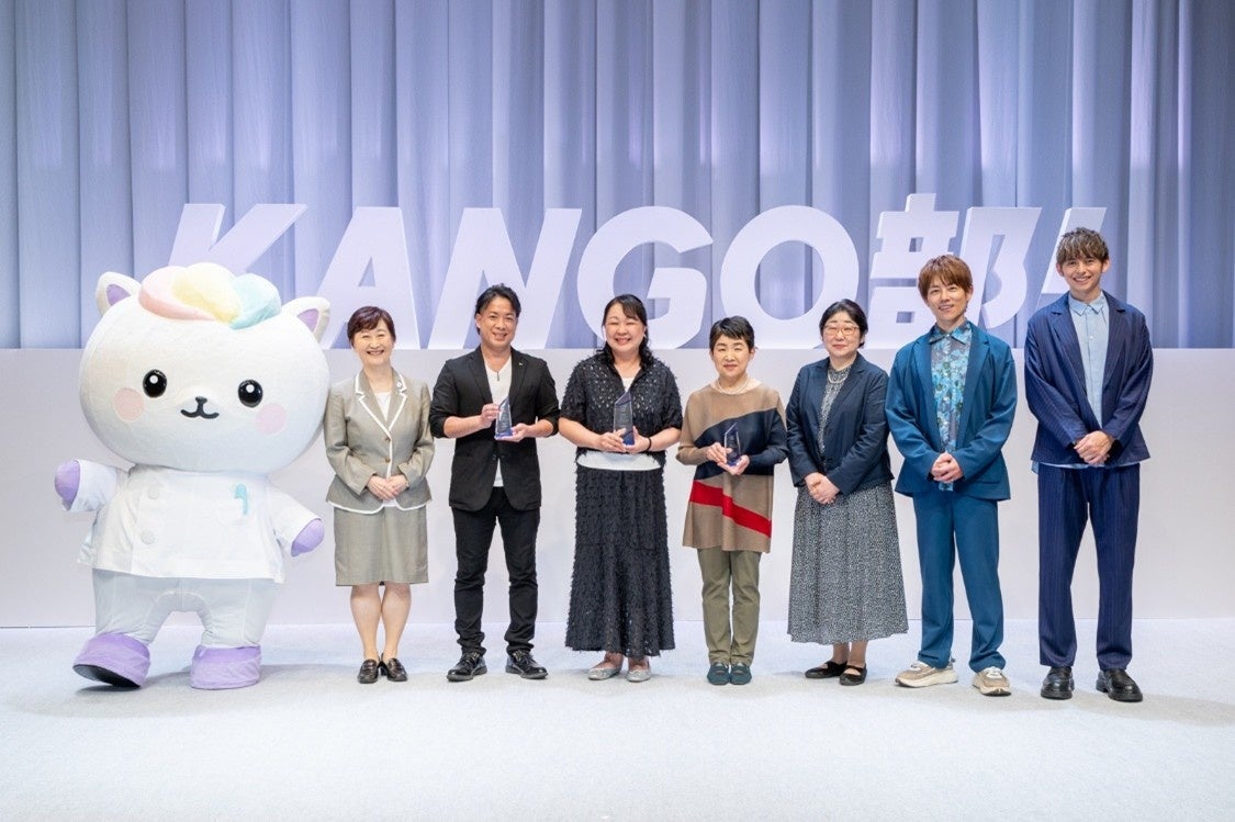 本イベントでは、昨年に引き続きMCをハリー杉山さんが務め、スペシャルサポーターとして俳優・タレントの杉浦太陽さん、人気声優の蒼井翔太さんが声を務める「看護の日」キャラクターのかんごちゃんが登場し、看護にまつわるエピソードや看護職を目指す中高生への熱いエールを交えたトークセッションが行われました。また、「忘れられない看護エピソード~いのちをまもり、支えるプロフェッショナル~」の受賞作品発表では、最優秀賞作品を基に作成されたアニメーションも上映され、登場人物の声を人気声優のゆきのさつきさん、坂本真綾さん、他が担当。さらに、内館牧子賞を杉浦太陽さん、優秀賞をハリー杉山さんが朗読しました。第2部では、「看護の日」キャラクター・かんごちゃんが看護の現場を取材したVTRを放映。病院で活躍する看護師が登壇し、仕事の魅力ややりがい、働き方が語られました。さまざまなコンテンツを通し、看護の魅力発信だけでなく、それを目指す中高生を応援するイベントとなりました。