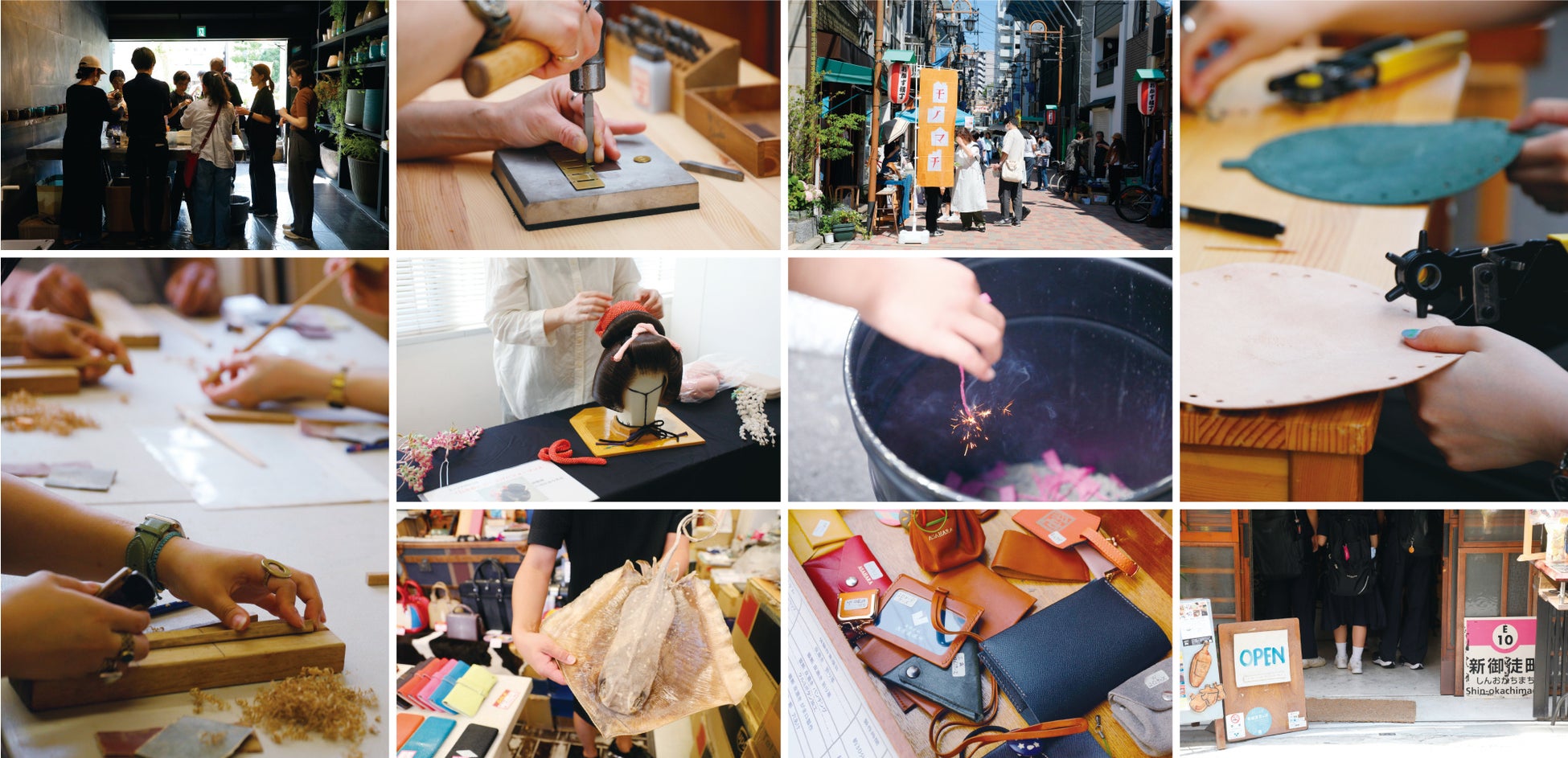 革製品、服飾資材、ハンドメイド資材、文具やインテリア雑貨、伝統工芸品、食器や家具、花、花火、仏壇仏具等を手掛けるメーカーや卸・問屋、小売店、工房、アトリエ、スタジオ、小売店、飲食店がモノマチを盛り上げます。