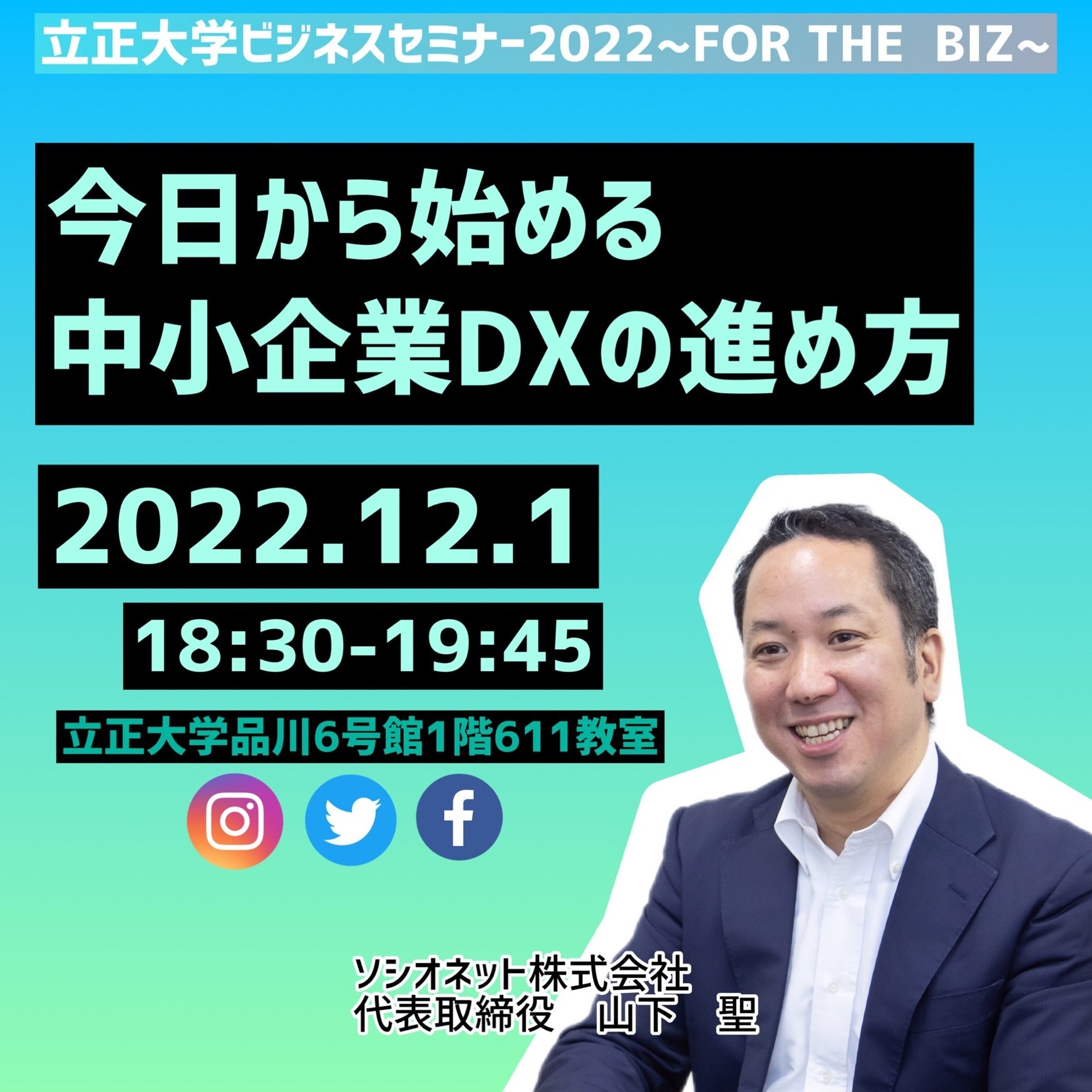 12/1(木)、ソシオネット代表取締役の山下聖、「立正大学ビジネスセミナー2022~FOR THE BIZ~」への登壇が決定!