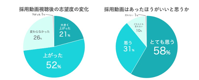 また、近年は高いエンゲージメントと効率性から、採用活動においても動画を活用している企業が増えています。企業と動画クリエイターのマッチングプラットフォーム「Lumii Video Hub(ルミービデオハブ)」を運営する株式会社Lumiiは、採用動画を視聴したことのある2024年大学卒業見込みの就職活動経験者317名を対象に、採用動画に関する実態調査を実施しました。そんな中、7割以上の方が、動画視聴により、志望度が上がったと回答しています。