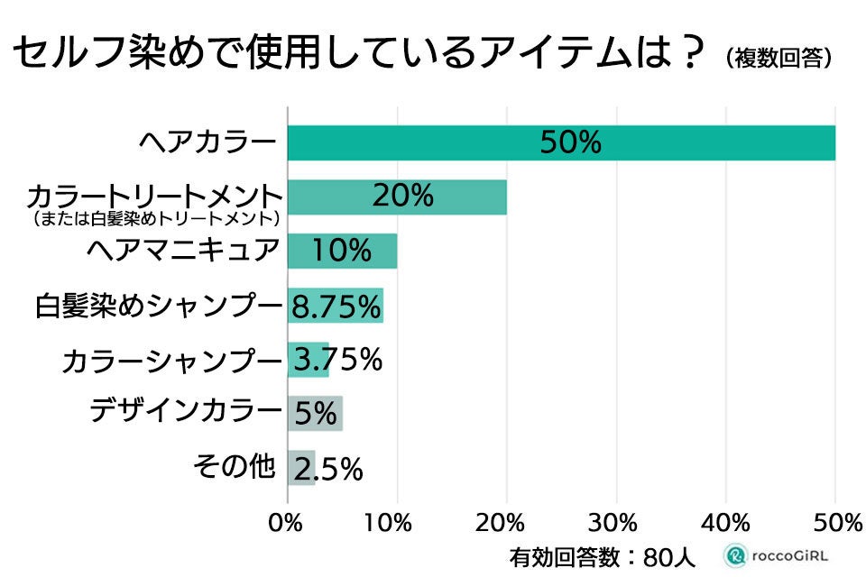 ・セルフで白髪を染めている人の約5割はヘアカラーを使用