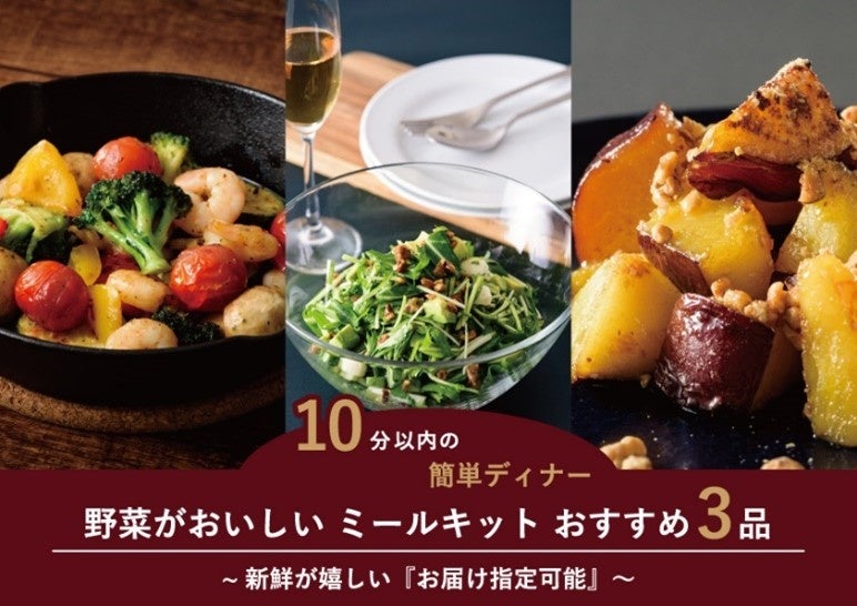 「野菜がおいしい ミールキット おすすめ3品」は、10分以内の簡単調理が可能で新鮮野菜が楽しめる「セルバチコ香るいちじくとアボカドの大人サラダ」、「海老と彩り野菜のアヒージョ風」、「さつまいもキャラメリゼ」の3品が詰め合わせに。「おうちで楽しむ青果まるごとスムージ」は、無添加、保存料を一切不使用の「アジアを旅するスムージ」、「白雲ホワイトスムージ」、「茜空レッドスムージ」、「新緑グリーンスムージ」、「黄花イエロースムージ」の5つがセットになります。