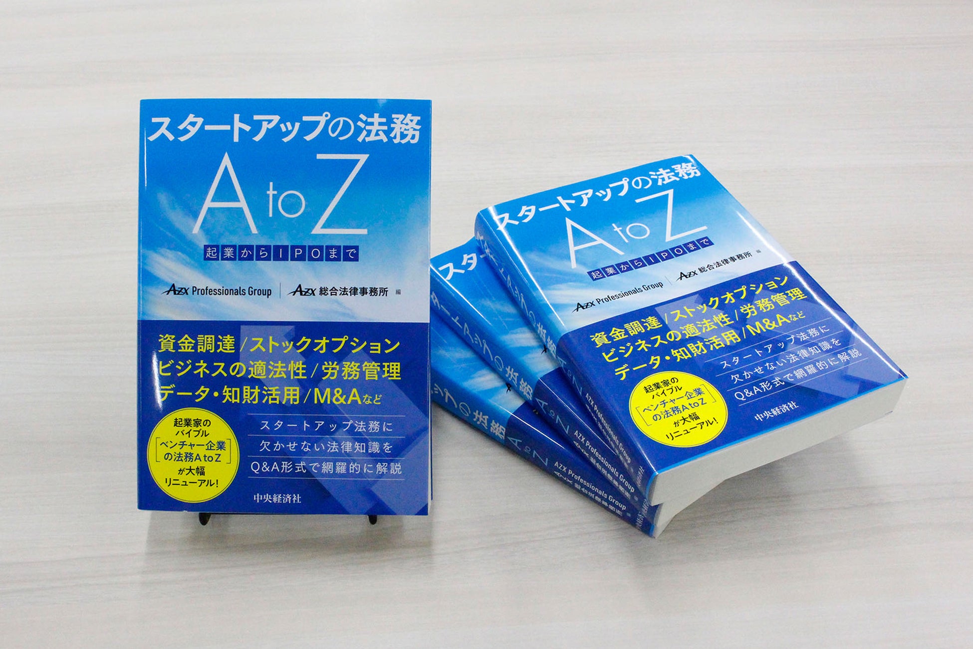 法務・会計・税務・労務・特許など会社にまつわるプロフェッショナルのサービスをワンストップで提供するAZX Professionals Group(本社:東京都千代田区/CEO:後藤 勝也、以下AZX)は2025年5月9日に『ベンチャー企業の法務AtoZ』を改訂し、新たに『スタートアップの法務AtoZ -起業からIPOまで』として発売いたします。本書はスタートアップ法務に欠かせない法律知識をQ&A形式で網羅的に解説したもので、会社法・民法・消費者契約法・個人情報保護法等の法改正、税制適格ストックオプションに関する改正に対応した、より充実した内容となっています。