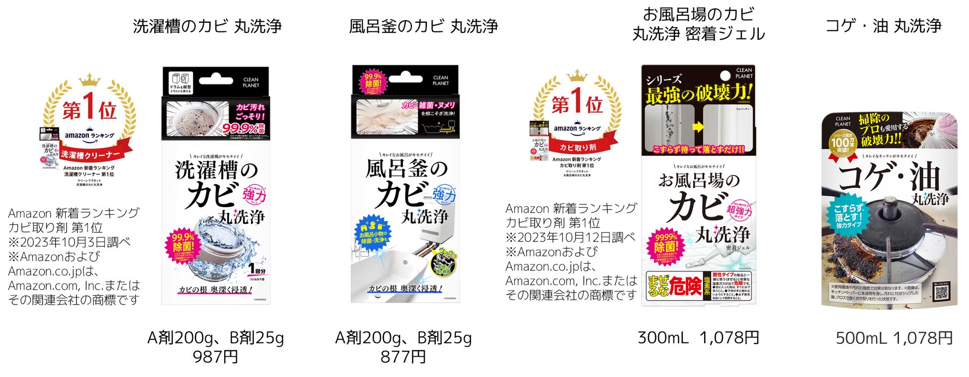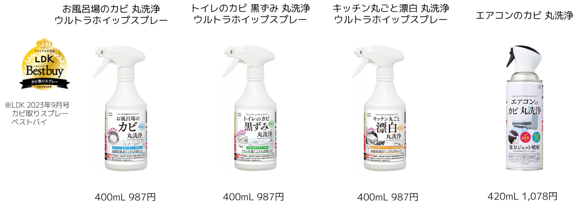 プロフェッショナルの技術を取り入れた、プレミアムクリーナーブランド『クリーンプラネット』の、ご自宅のカビやコゲなどの気になる汚れを手軽に一掃できる「丸洗浄」シリーズ。「洗濯槽のカビ 丸洗浄」「エアコンのカビ 丸洗浄」をはじめ、最強レベル*を目指した洗浄力で、多くのお客様に支持いただいています。濃密泡が広範囲のカビにピタッと密着し洗浄する、大人気の「お風呂場のカビ 丸洗浄 ウルトラホイップスプレー」は、忖度無しの本気のレビューにて人気の雑誌「LDK」の2023年9月号にて、カビ取りスプレー部門のベストバイを獲得しております。