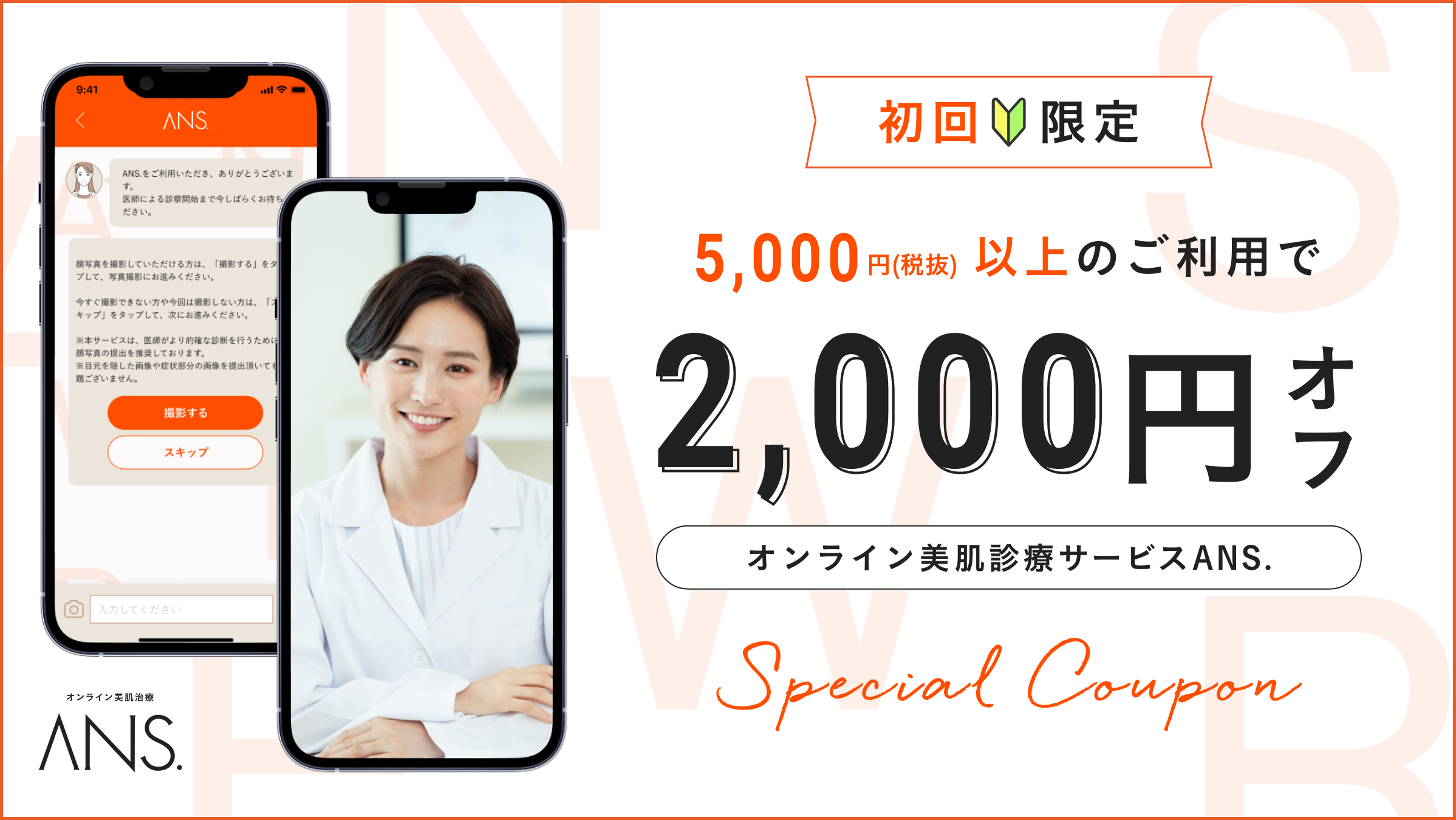 クーポン内容:初回限定2,000円割引 ※ANS.のご利用が初めての方で、5,000円以上のご利用の際に適応