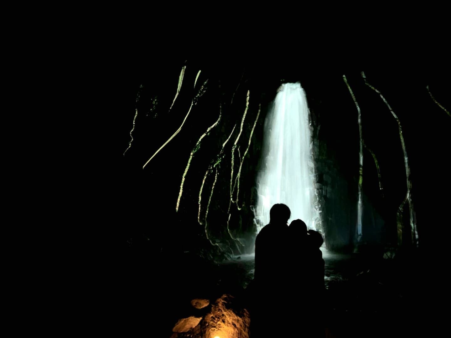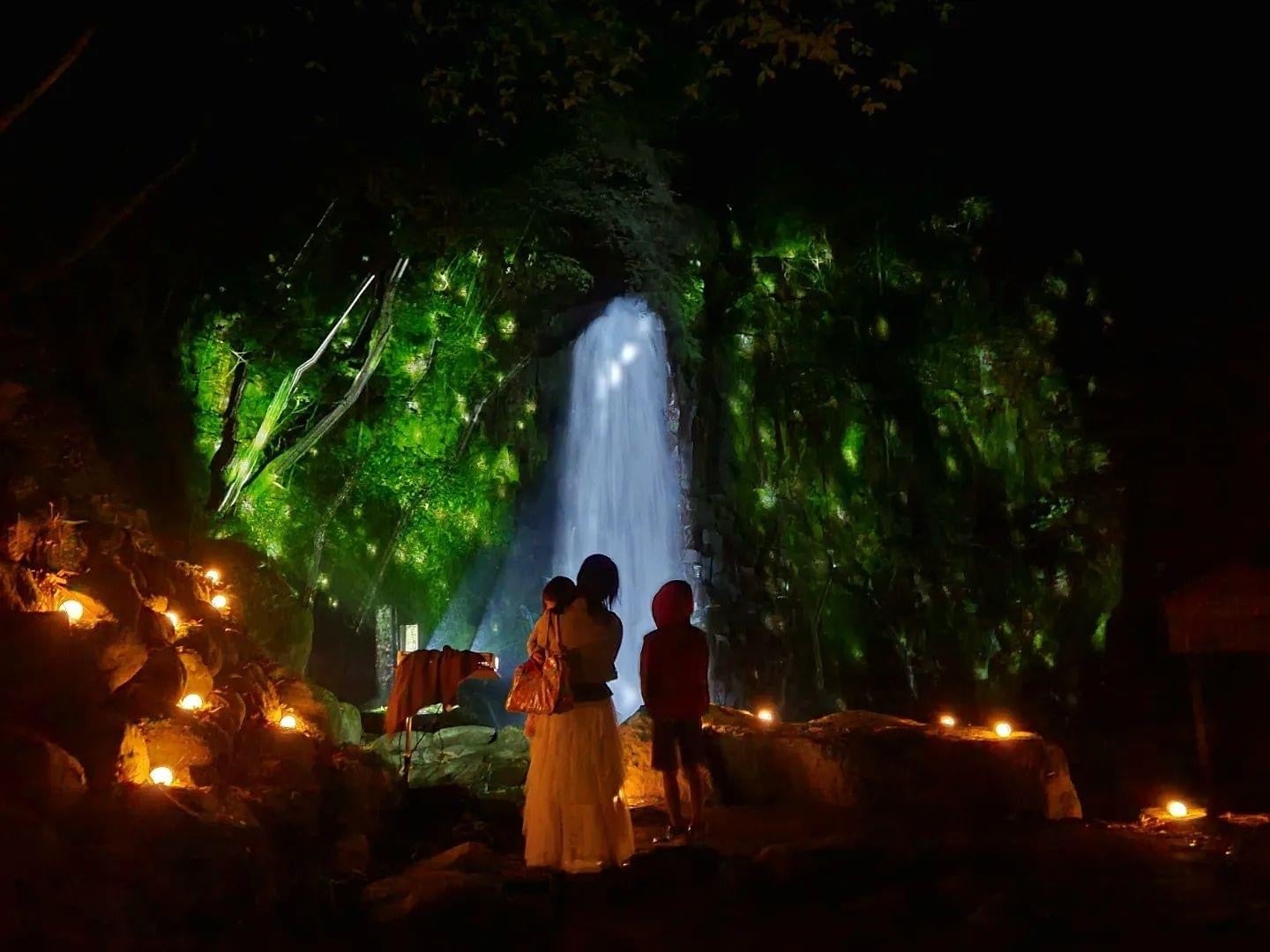 ゴールデンウィーク、観光客に来てもらおうと熊本県西原村の白糸の滝を使ったプロジェクションマッピングが開催