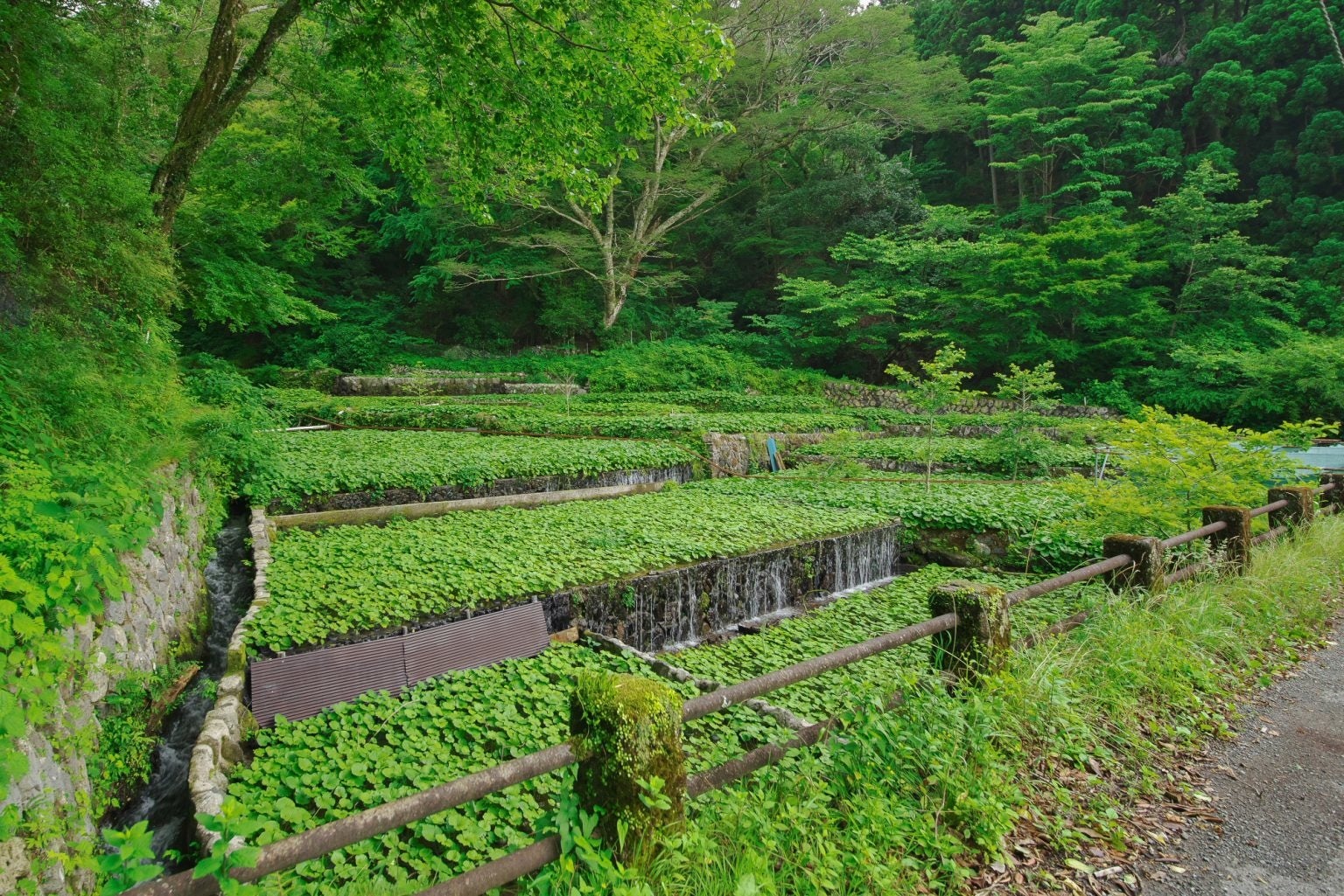 わさび田は、美しい段々畑と畳石式栽培が世界農業遺産に登録されています。
