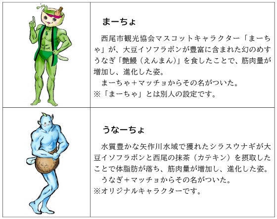 西尾市版ふるさと納税3.0では、キャンペーンのほかにも戦略的な取り組みとして、ふるさと納税応援アンバサダー「まーちょ」「うなーちょ」が就任し、公式SNSで発信します。「とがった」をポイントに、キャラコンセプトとして、印象に残るよう筋肉キャラとしました。