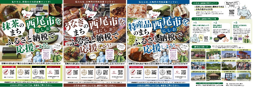また、ふるさと応援「市民営業マン」チラシによるPRも計画し、市職員だけでなく、市民・市内事業者の皆様もふるさと納税の「市民営業マン」として活動できるようチラシを作成し、まちが一体となって、ふるさと納税の推進を図ります。シティプロモーションの一環として、西尾市の魅力を発信する取り組みです。