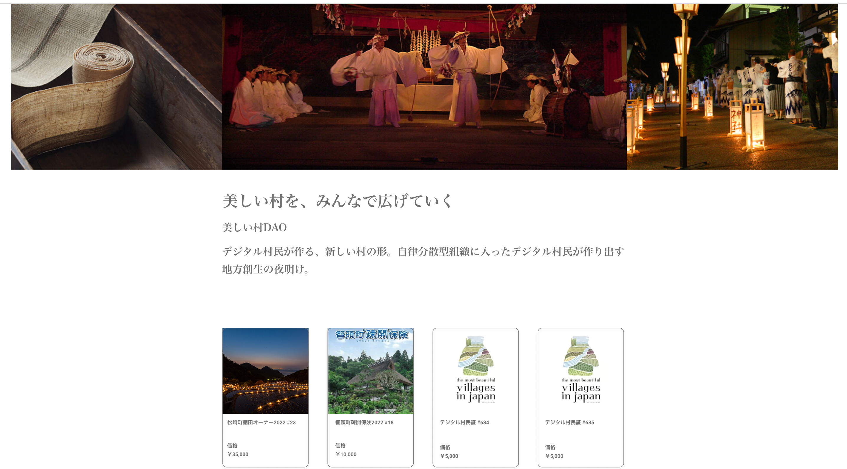 日本初※!全国の美しい村で活用できるデジタル村民証『美しい村NFT』の予約販売を3月1日よりスタート!『美しい村DAO』『美しい村メタバース』など、web3を活用した広域連携による地方創生を推進。