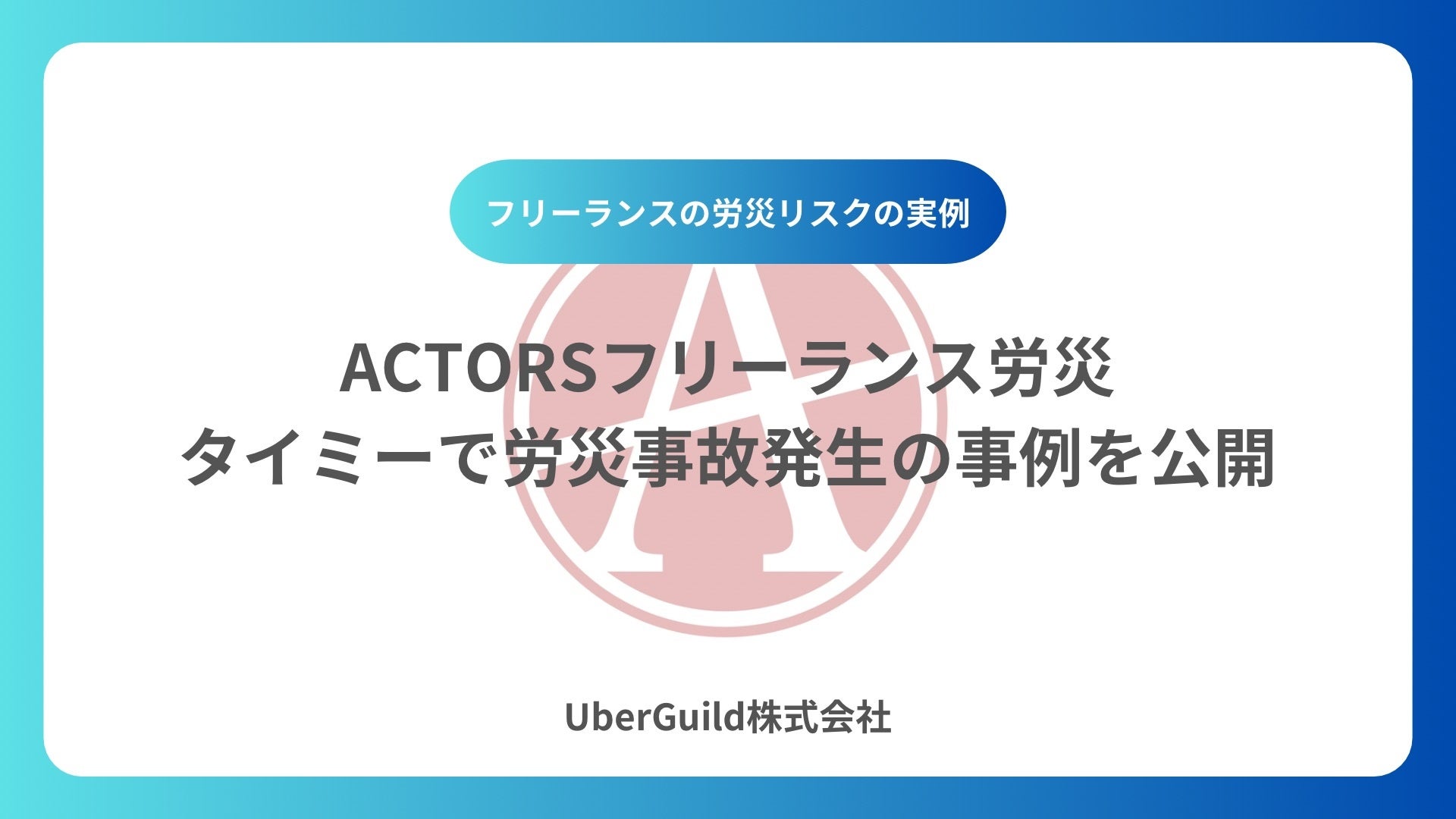 フリーランス向けの労災保険特別加入サービス「ACTORSフリーランス労災」を運営するUberGuild株式会社(代表取締役 山下 卓人)は、このたびACTORSフリーランス労災の組合員がタイミーでの業務の帰り道に労災事故発生となったことを受けて、ホームページにて取り扱い事例の公開を行いました。
