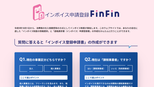 適格請求書発行事業者の登録申請書作成サイト「インボイス申請登録FinFin」を公開!