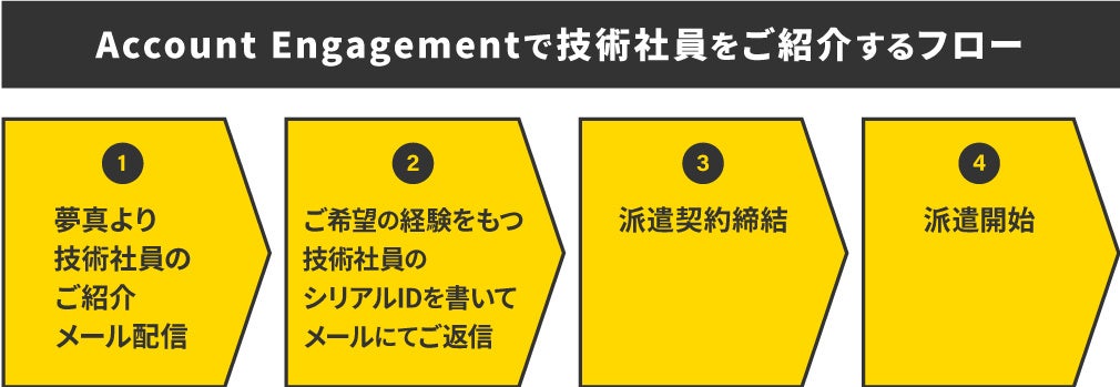 経験豊富な技術社員を一部のお取引企業様に週1回の頻度でご紹介するため、夢真ではマーケティングオートメーションツール(以下、MAツールと表記)のAccount Engagement (旧 Pardot)※注1を利用しています。