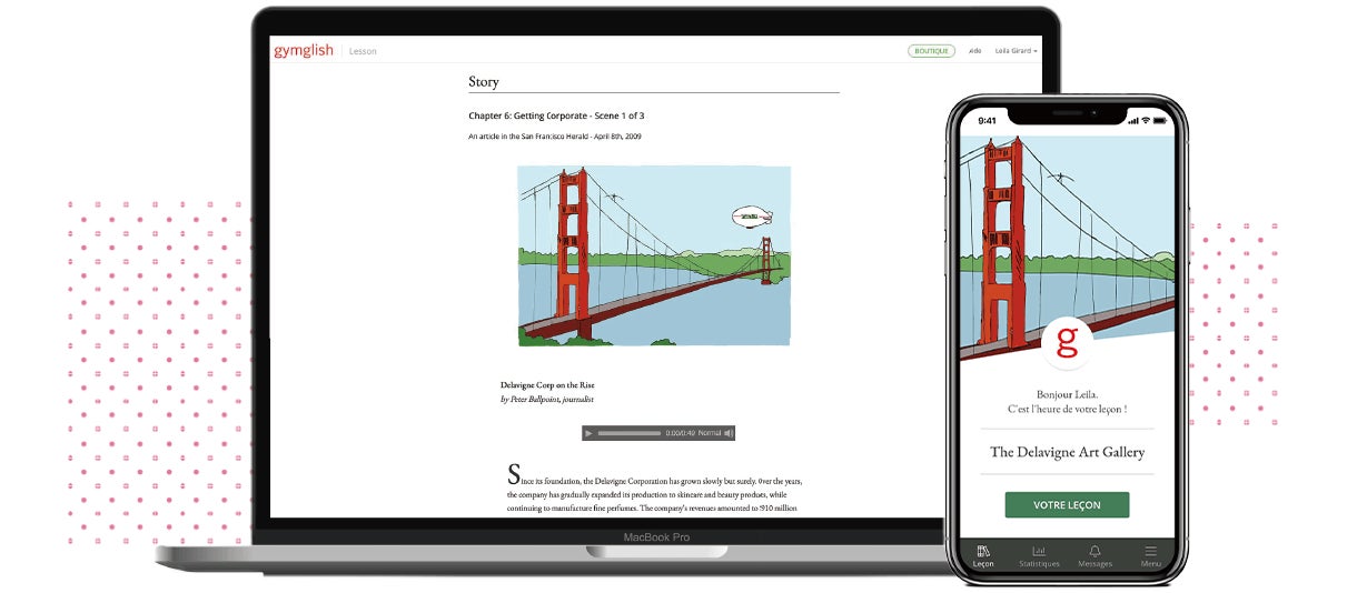 語学学習アプリ gymglishシリーズは、フランスのA9社の人工知能研究者を中心とするチームにより開発され、2004年以来、英語、フランス語、ドイツ語、スペイン語、イタリア語の学習プログラムをリリースし、欧米を中心に700万人以上の受講実績、6000社以上の企業採用実績があります。
