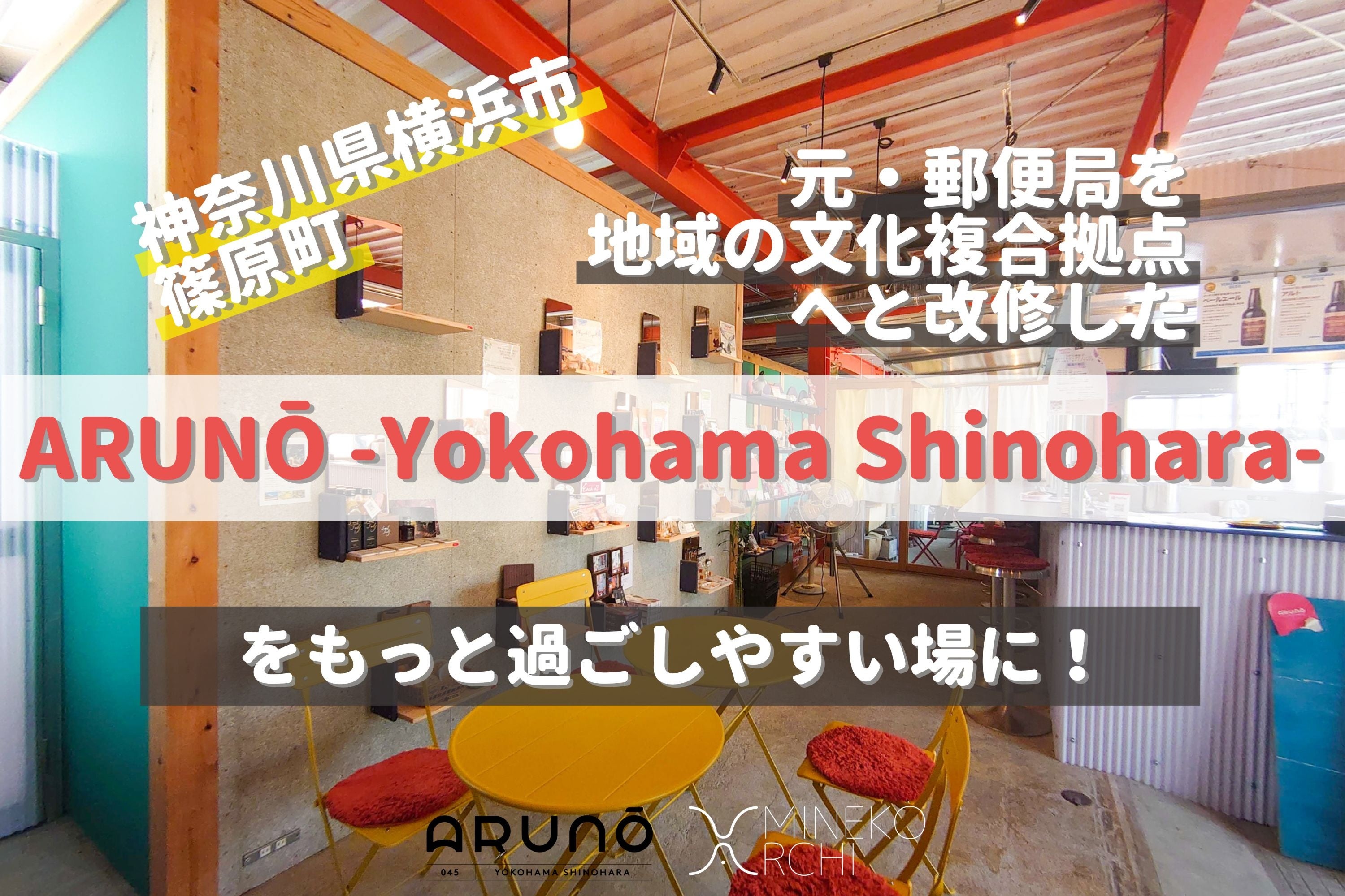 ARUNŌがあるのは、JR新横浜駅・篠原口から歩いて5分ほどのところ。1975年に建てられた旧・横浜篠原郵便局の跡地を、誰もが気軽に足を運び、ごはんを食べ、お店を出し、住まい、人と繫がり、地域を知ることができる場として株式会社ウミネコアーキが改修・運営をしているプロジェクトです。