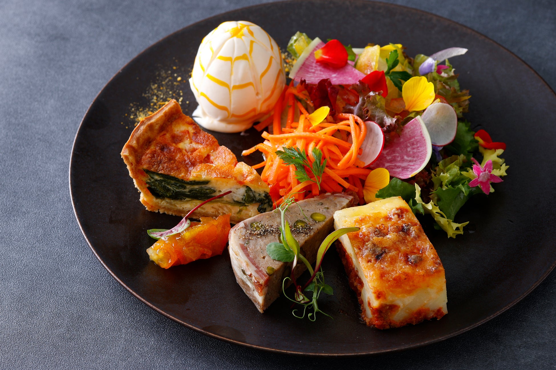 名物のウフマヨをはじめ、キッシュやパテ・ド・カンパーニュ、ミートソースのドフィノワグラタンなど、彩り豊かなメニューを少量ずつワンプレートでお楽しみいただけるランチタイム限定プレートです。