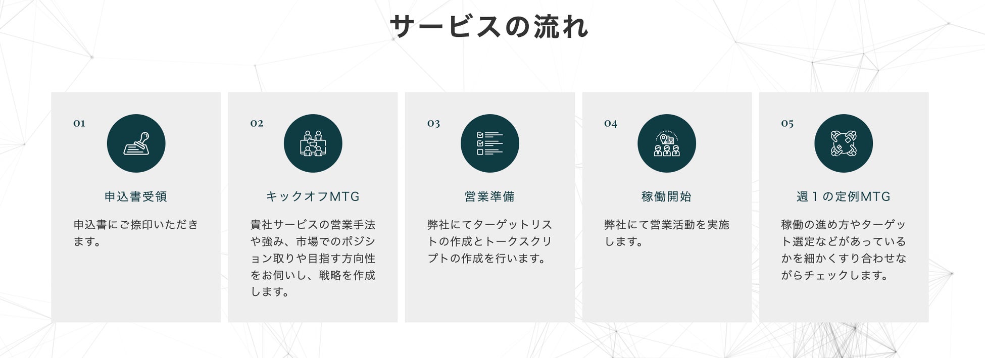 特定技能登録支援機関、技人国ビザの人材紹介会社、技能実習生監理団体、外国人専門求人媒体、送り出し機関といった企業や組織のご支援させていただいております。現在の取得アポイントメント率は、2%〜1.5%で推移し、安定したアポイントメントの供給を行っております。