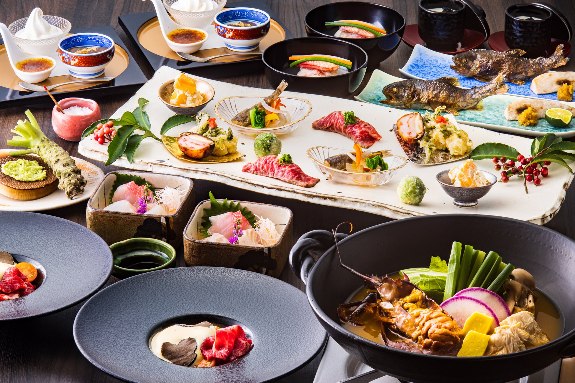 旅の醍醐味である「季節の幸」「土地の恵み」を堪能いただける和食会席は、割烹スタイ ルで提供いたします。地元食材をふんだんに使用したコース料理をお楽しみください。