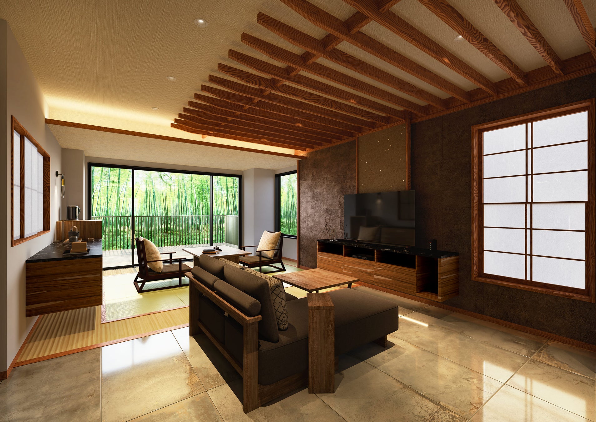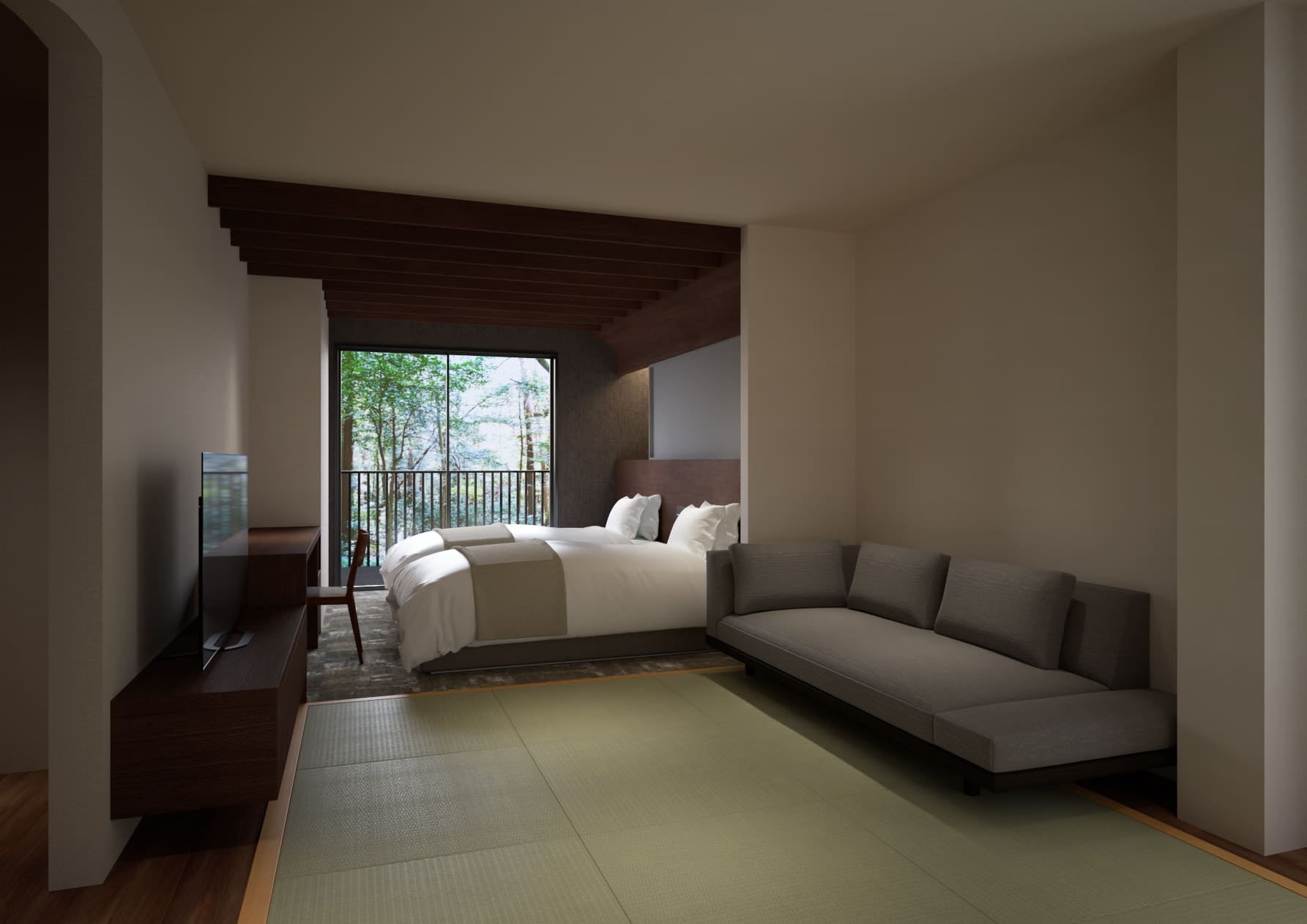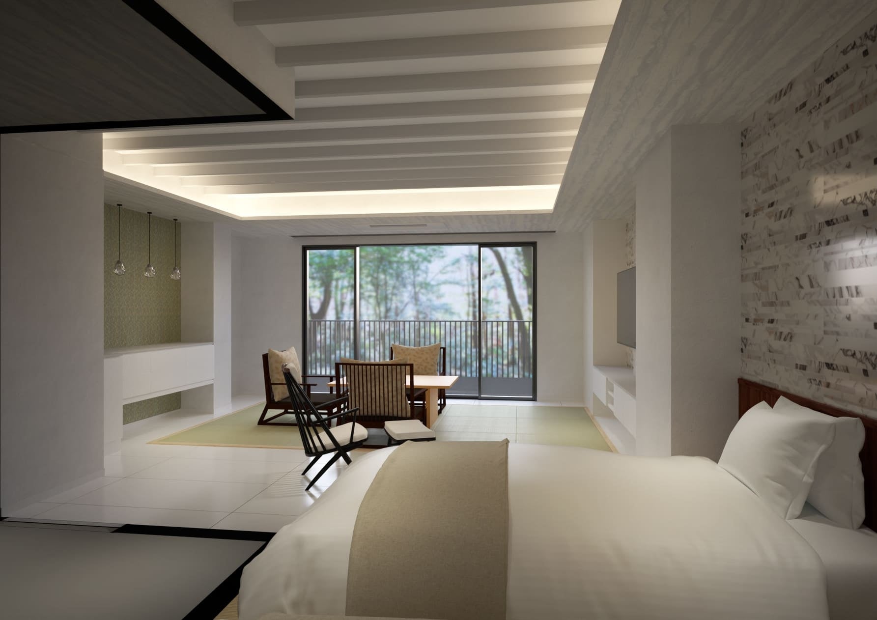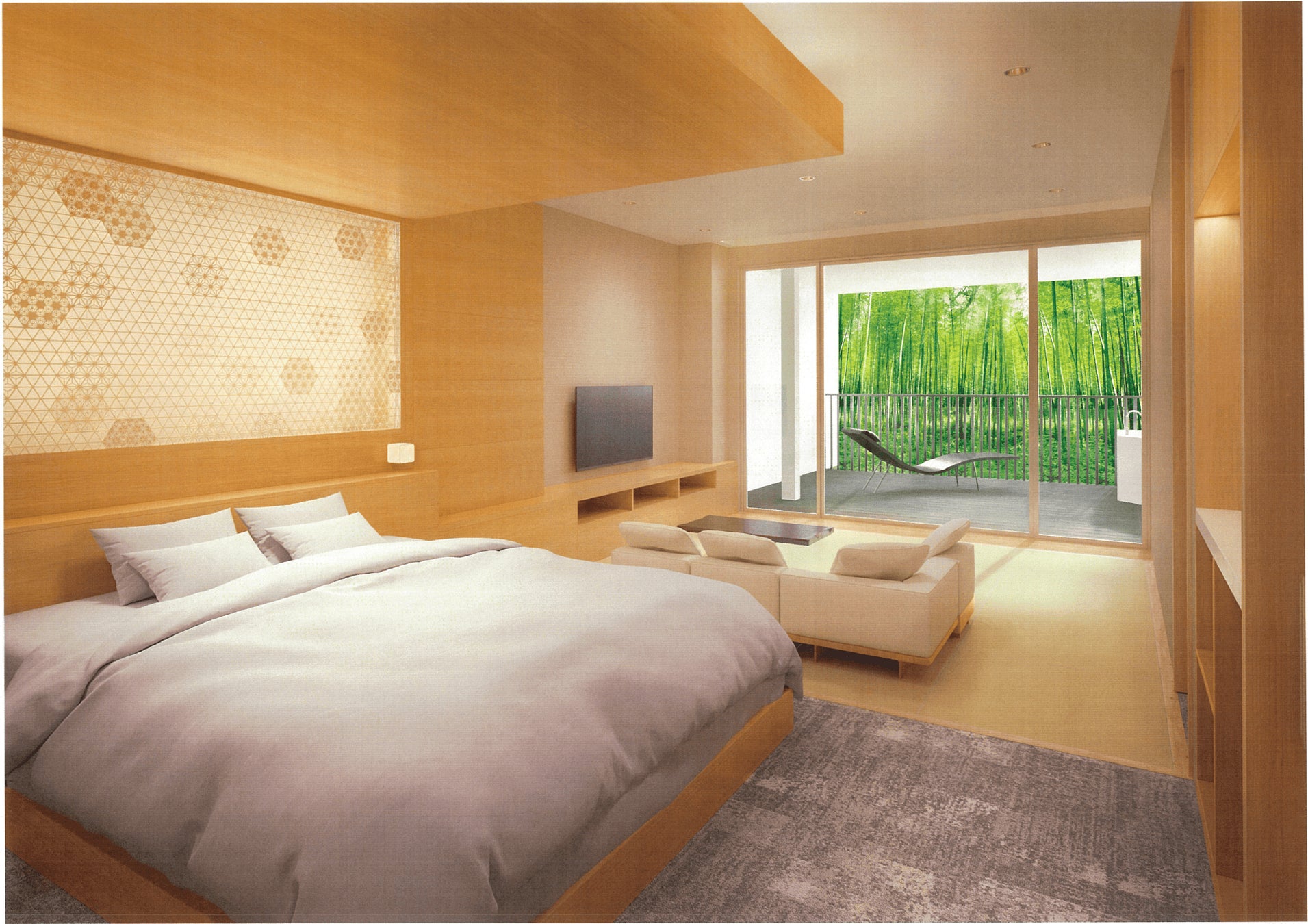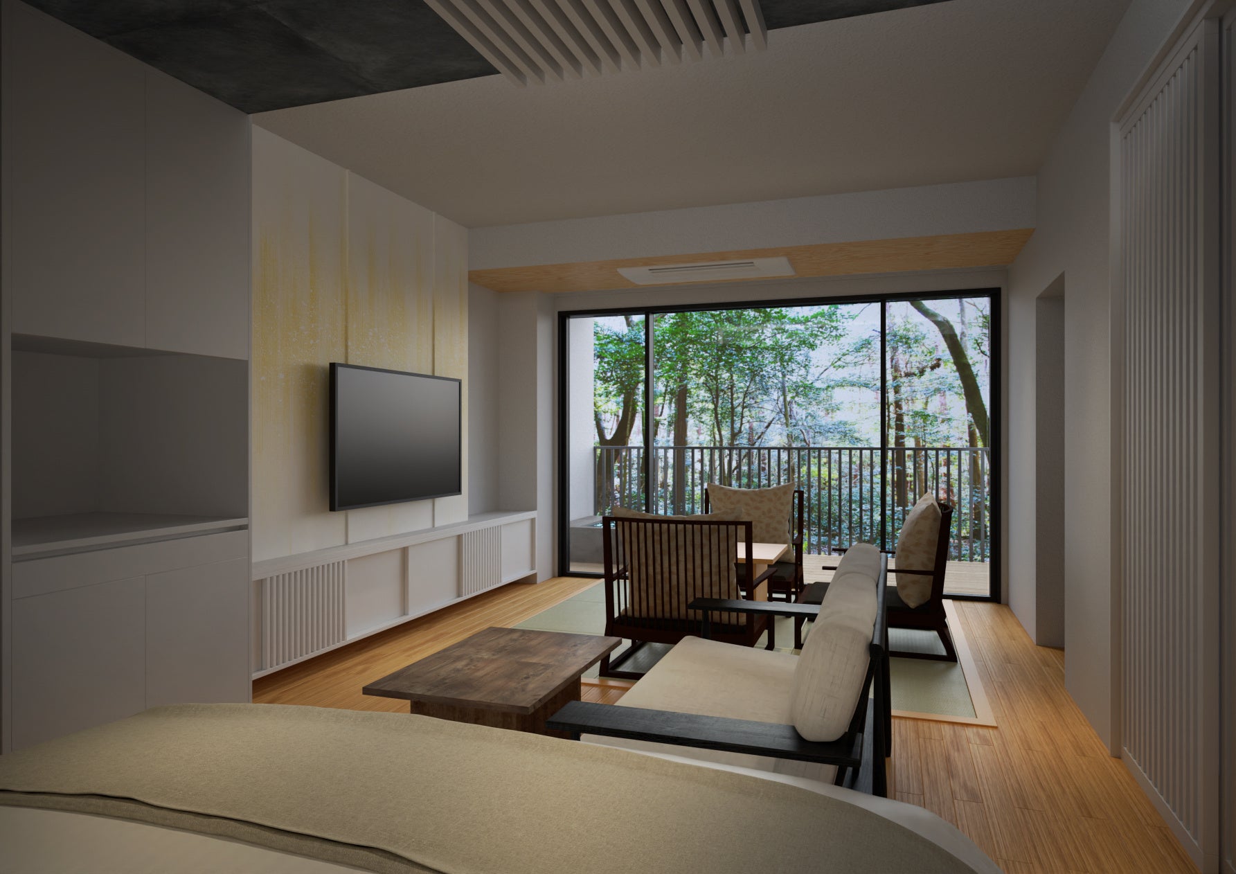 今回新設された8室はリバーサイドに位置する2階建ての本館にあり、それぞれが四季折々の自然の美しさを堪能できるデザインとなっております。(画像はイメージパース)